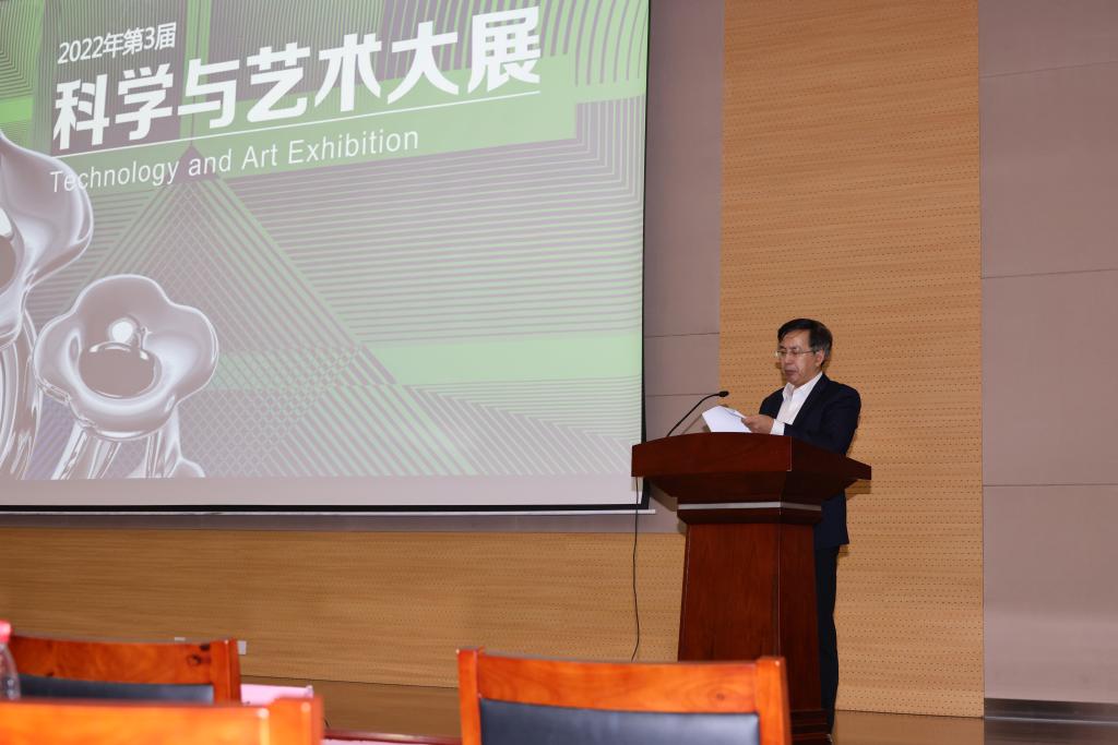 校党委书记史国君在开展仪式上致辞,他代表南工程欢迎和感谢各位领导、业界精英来校指导,他说,科学和艺术看似两个领域,其实渊源颇深,科学是追求真的探索,艺术是追求美的探索,随着科学技术的发展,艺术的表现形式、媒介也在改变,两者注定是在前进道路上“相互扶持”“相伴相生”。他表示,要深入贯彻落实习近平总书记在清华美院提出的“美术、艺术、科学、技术相辅相成、相互促进、相得益彰”的要求,在学校“申博扩硕升大学”的战略目标指引下,艺术学科作为学校发展的重要助力,要依托学校在电力设备、机械工程、智能装备制造、轨道交通等领域的工科优势,与艺术创意结合,形成南工程特色的艺术设计与先进制造业深度融合的“艺工结合”的发展道路。