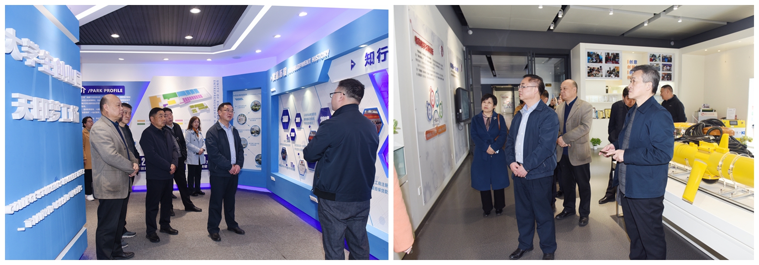 会上,郑锋副院长对严云洋副校长一行的到访表示热烈欢迎,并简要介绍了我校的办学历史、办学特色和办学成效,重点介绍了我校在本科教育教学审核评估试点工作组织和实施、教育教学改革及现代产业学院运行机制等方面的举措。他强调,此次审核评估是对本科教育教学反思和认识的过程,也是全校统一思想认识的契机。学校根据专家组提出的问题和建议,坚持以评促建,以评促改,以评促管,以评促强,落实立德树人根本任务,构建以“学生为中心”的“三全育人”体系,将“能力导向,项目载体”的应用型本科人才培养特色案例,打造为本科教学的品牌和示范。双方相互交流介绍了新一轮审核评估试点工作开展情况、创新创业教育、质量文化建设及现代产业学院运行工作中的一些做法与经验,并就学校共同关注的问题进行了深入探讨。严云洋副校长一行还实地参观考察了创新创业学院、大学生创业园“天印梦工场”。