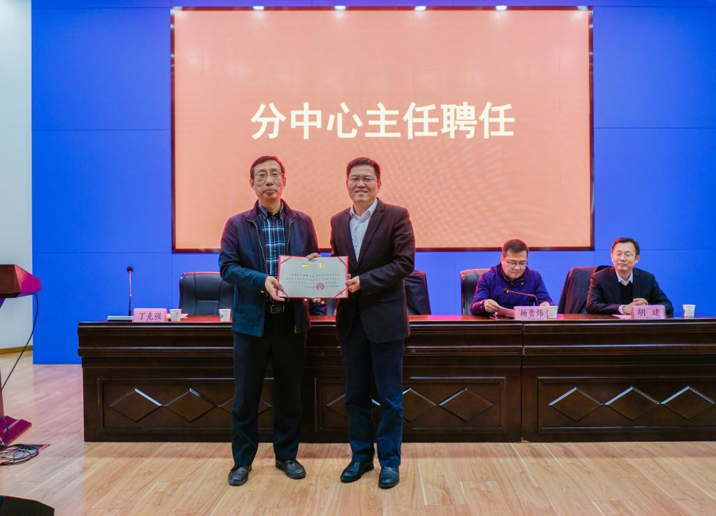 活动中,朱晓春副院长与杨晋炜院长为研究中心揭牌;我校环境工程学院丁克强教授受聘为工程技术创新中心南京工程学院分中心主任,濮励杰副书记为丁克强颁发聘书。