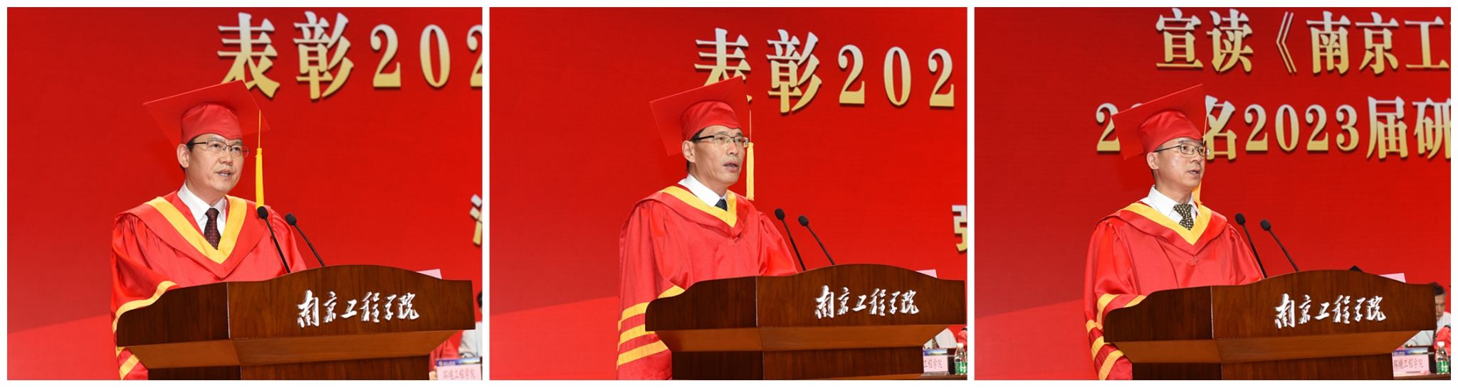 校党委副书记濮励杰,党委常委、副院长张仰飞宣读了优秀毕业研究生、优秀工程硕士实践获得者、本科优秀毕业生表彰决定。党委常委、副院长郑锋宣读了校学位评定委员会决议。在我校2023届毕业生中,涌现出了省级先进班集体16个,有2万多人次获校级及以上表彰或奖项,其中省优秀本科毕业生12名,省级三好学生、优秀学生干部34名;校级三好学生标兵33名,三好学生380名,优秀学生干部342名。有1080名同学光荣加入中国共产党,有1341名同学考取了硕士研究生、博士研究生。