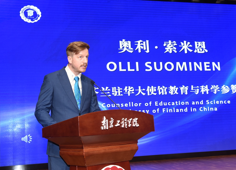奥卢大学副校长Tapio Koivu在讲话中回顾了中芬两国的深厚友谊和两校合作与交流的良好关系,他说,南京工程学院奥卢学院的正式揭牌是双方合作之旅的又一重要里程碑,双方共同见证了合作规模的扩大,期待双方在科学研究、硕博研究生培养等方面不断深化合作,通过培养学识渊博、技艺精湛的高精尖人才,为两国乃至全球发展贡献力量。