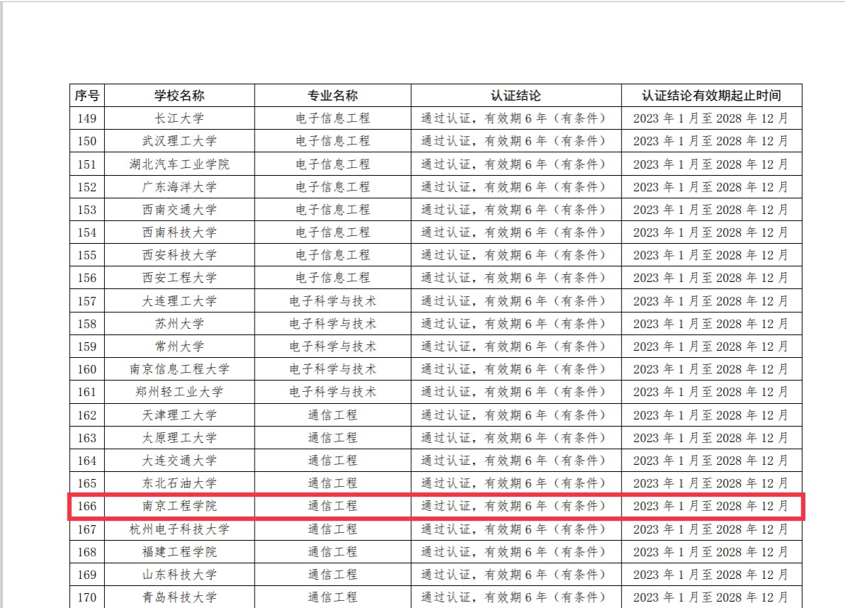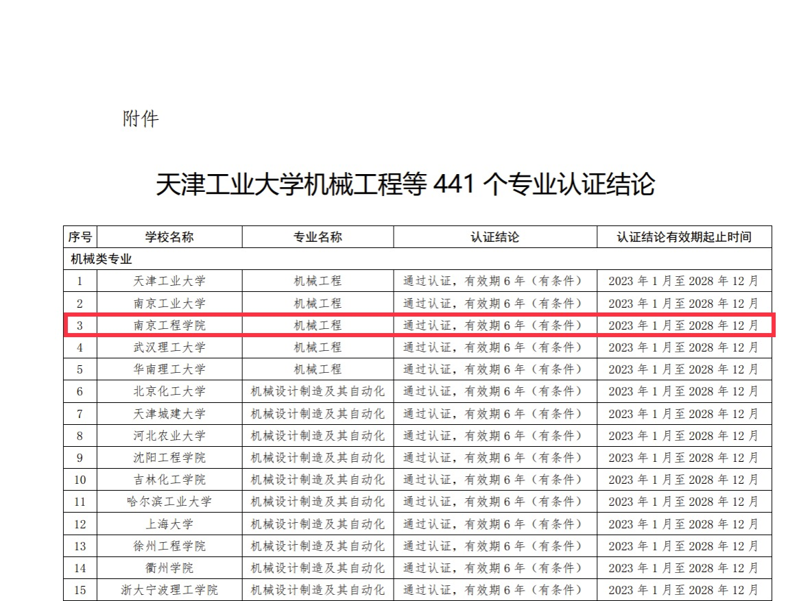 6月27日,中国工程教育专业认证协会、教育部教育质量评估中心发布《关于公布天津工业大学机械工程等441个专业认证结论的通知》,对2022年参加全国工程教育专业认证的认证结论进行公示,我校机械工程、通信工程两个专业顺利通过工程教育专业认证,有效期六年(2023年1月至2028年12月)。截止目前,我校已有8个专业通过工程教育专业认证。