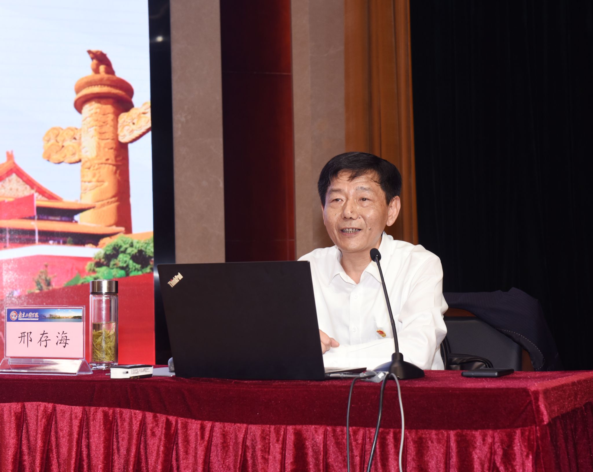 报告会上,邢存海以“学习贯彻习近平总书记关于党的建设的重要思想,全面提高高校基层党建工作质量”为题,结合自身多年党建工作创新实践,围绕习近平总书记关于党的建设的重要思想、深化对高校党建工作的认识、以高质量党建引领高质量发展、提高党建工作质量的几点思考等四个方面,就如何提高高校基层党建工作质量展开全面系统、深入浅出的阐述。他指出,习近平总书记关于党的建设的重要思想是全面推进新时代党的建设新的伟大工程的根本遵循和行动指南。要坚持和加强党对学校工作的全面领导,着眼党建做党务、围绕中心抓党建,在注重整体设计、注重特色培育、注重守正创新、注重久久为功、注重工作研究等方面下功夫,以高质量党建引领高质量发展。报告站位高远、层次清晰、内容详实、措施到位,具有很强的针对性和指导性,为学校党员干部深刻领悟习近平总书记重要讲话精神,进一步推动学校党建高质量发展、助力学校事业高质量发展提供指导。