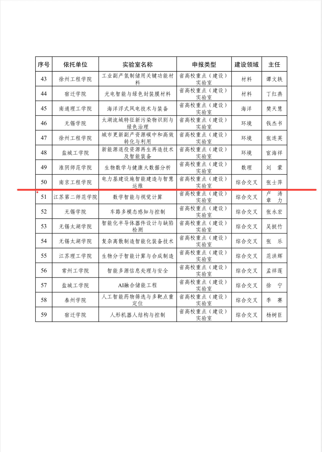 近日,省教育厅公布江苏高校重点实验室新增建设名单,由我校牵头申报,江苏苏博特新材料股份有限公司、中国能源建设集团江苏省电力建设第一工程有限公司以及江苏省送变电有限公司共建的“电力基建设施智能建造与智慧运维江苏省重点(建设)实验室”成功获批。这是我校在智能建造与智慧运维交叉领域取得的阶段性成果,标志着学校在服务国家新型电力系统建设和江苏能源战略方面迈上新的台阶。