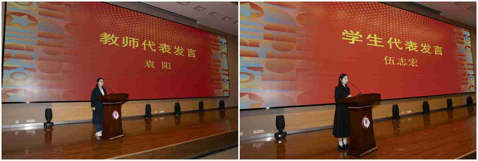艺术与设计学院动画系教师袁阳作为教师代表分享了创作心得,并表示,将始终坚守育人初心,坚持以艺术弘扬主旋律,为学校事业发展贡献艺术力量。学生代表武志宏在发言中阐释了作品寓意,表达了对学校的深厚情感。