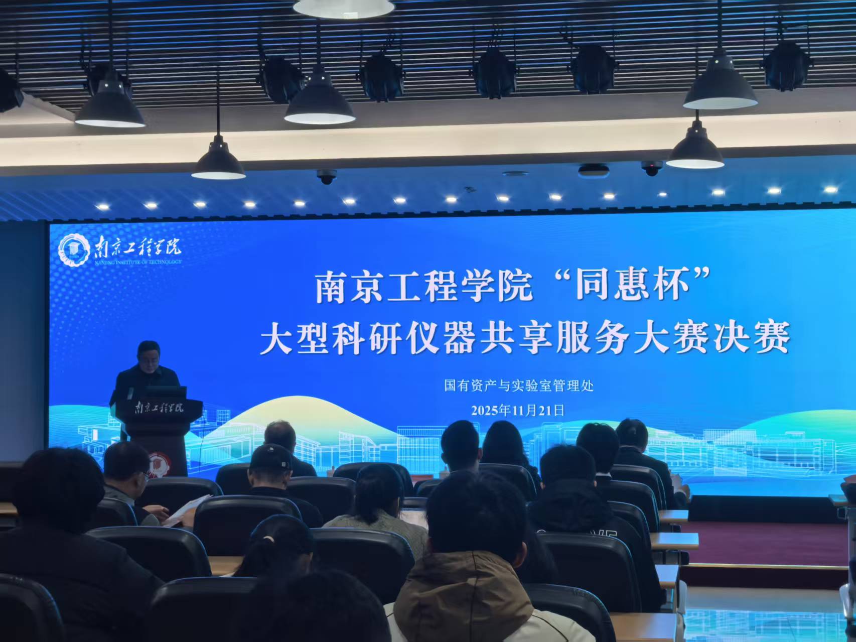 11月21日下午,我校“同惠杯”大型科研仪器共享服务大赛决赛顺利举行。副校长包永强出席活动并致辞。大赛邀请到来自南京大学、东南大学、南京航空航天大学、南京工业大学浦江学院、康尼机电、同惠电子等六所高校与企业的相关职能部门负责人担任评审专家。各参赛团队及教育教学单位教师代表现场观摩。