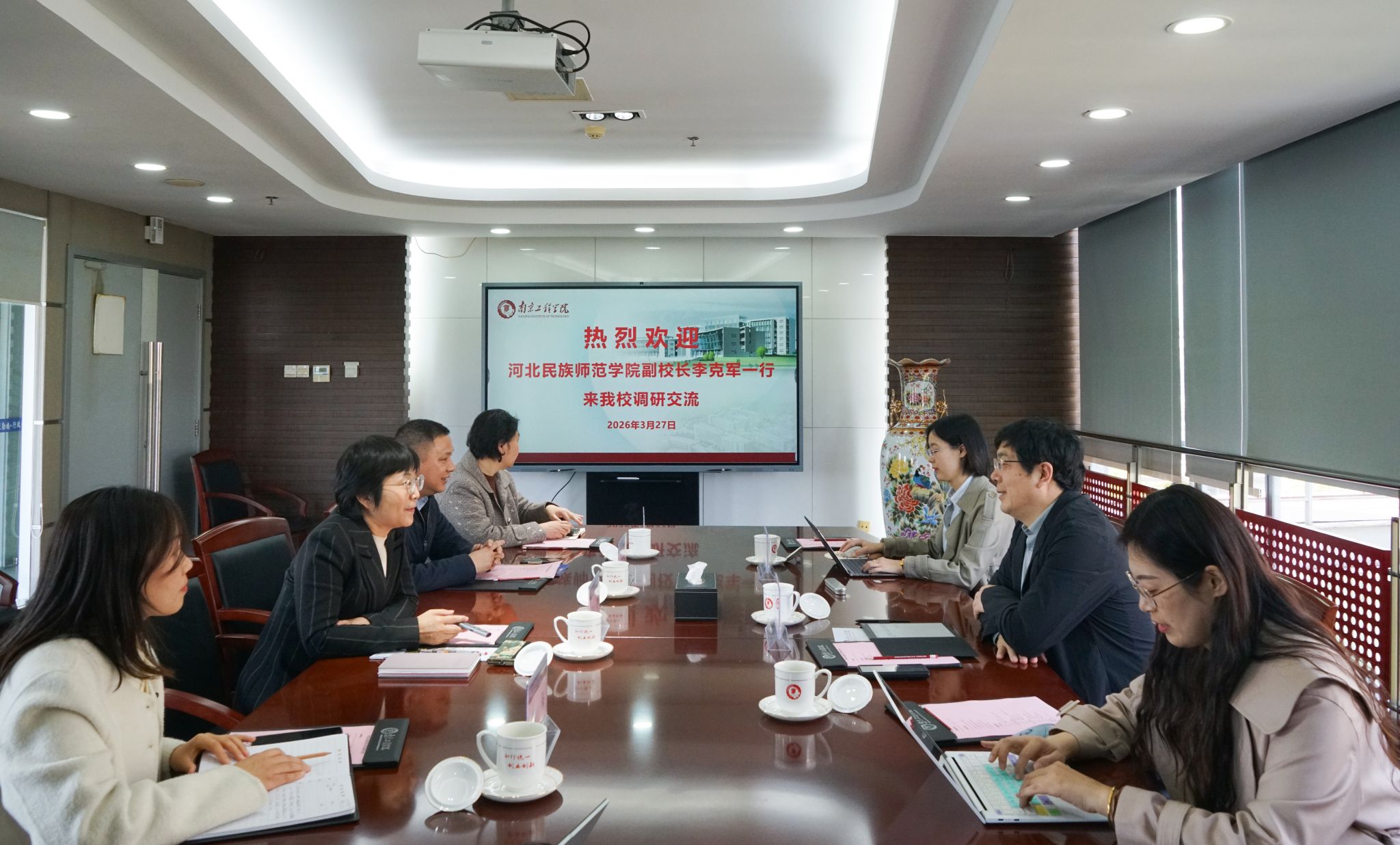 3月27日下午,河北民族师范学院党委常委、副校长李克军一行来校开展专题调研交流。党委副书记、校长张仰飞热情接待来宾,党委常委、副校长汪群参加座谈,创新创业学院、教务处相关负责人陪同调研。