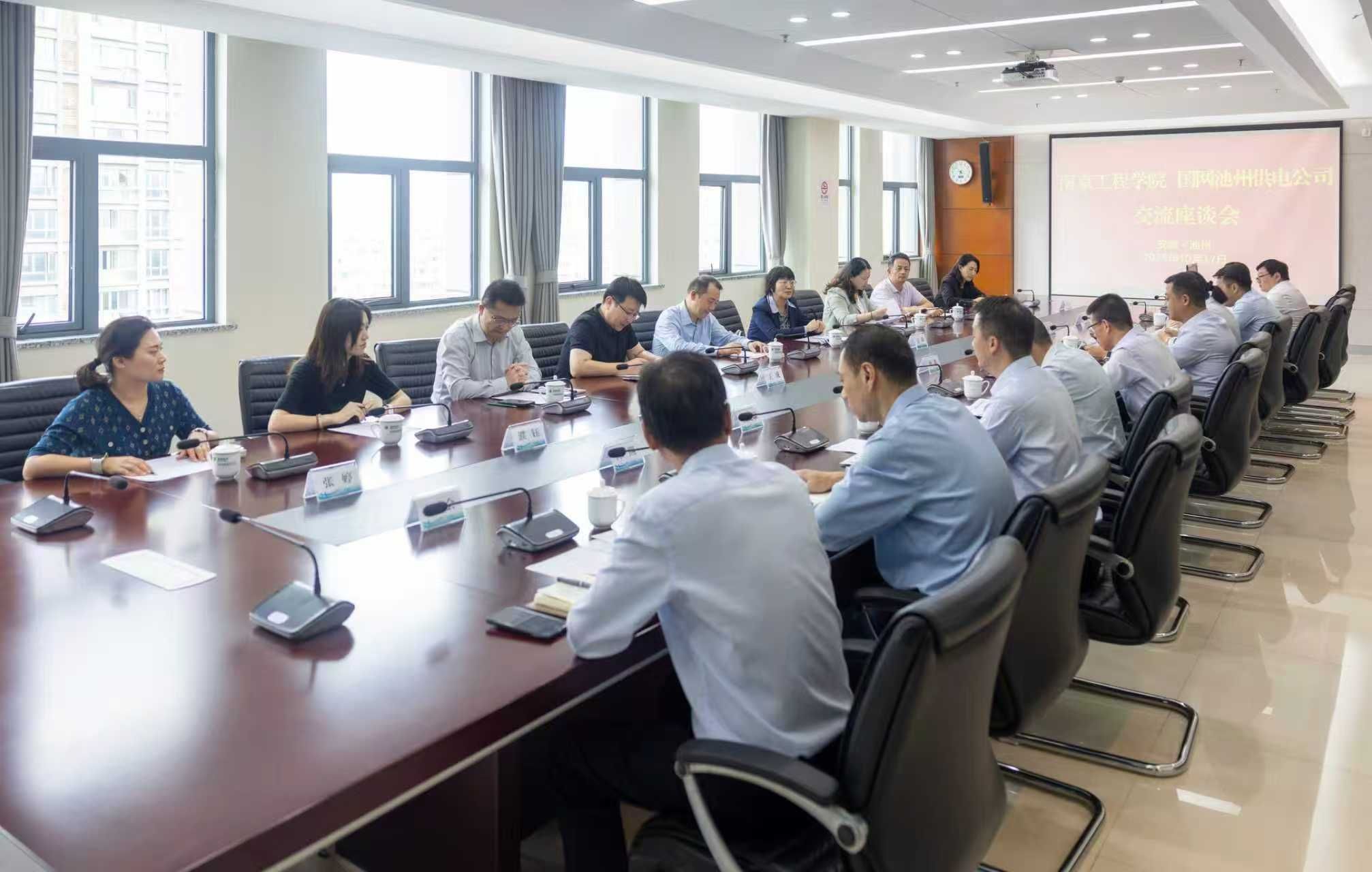 孙爱武介绍了学校的办学历史、学科布局以及电力领域传统优势与创新发展成果,希望以此次调研交流为契机,推动校企双方在产学研平台共建、人才联合培养、科技成果转化、党建与文化融合、大学生就业实习等方面精诚合作,服务区域经济社会高质量发展。同时,他诚挚邀请企业领导、优秀校友来校参加第三届校城融合发展大会 办学110周年暨合并组建25周年高质量发展论坛。座谈时,汪群介绍了学校对外合作工作机制与成效,建议建立校地校企常态化合作机制;三家企业的相关部门负责人结合业务需求,表达了在智能配电网、储能技术、双碳战略、新能源等领域的合作意向。