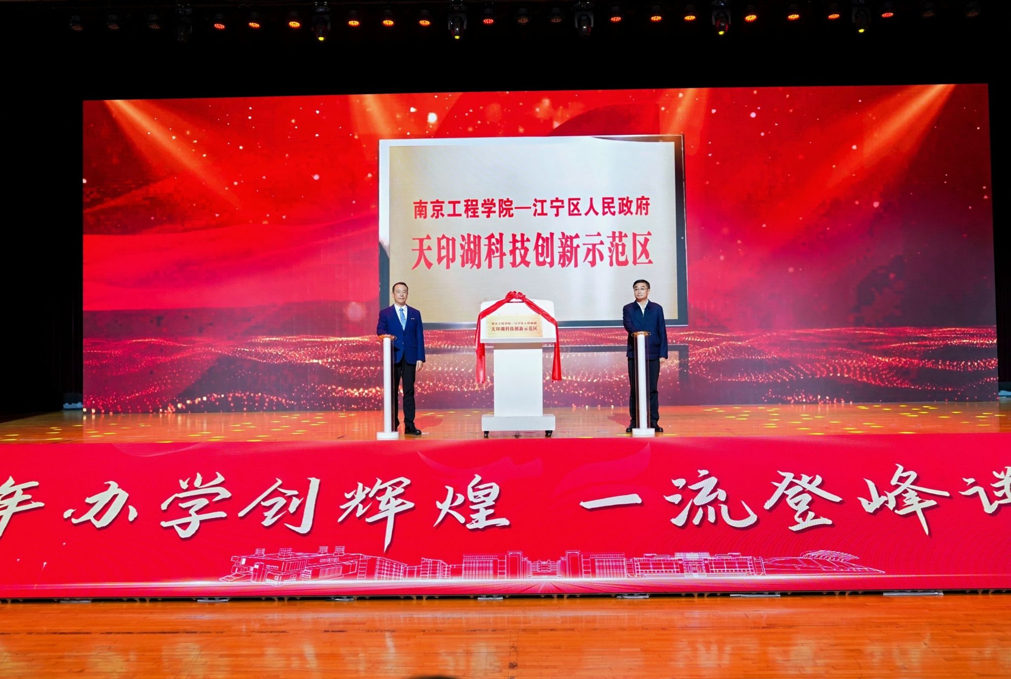在与会人员的共同见证下,学校与南京建邺高新区、宿迁高新区共建的“双高协同创新中心”正式揭牌;同时,与江宁区人民政府携手打造的“天印湖科技创新示范区”也正式启动,共同构筑产教融合与区域创新的新高地。