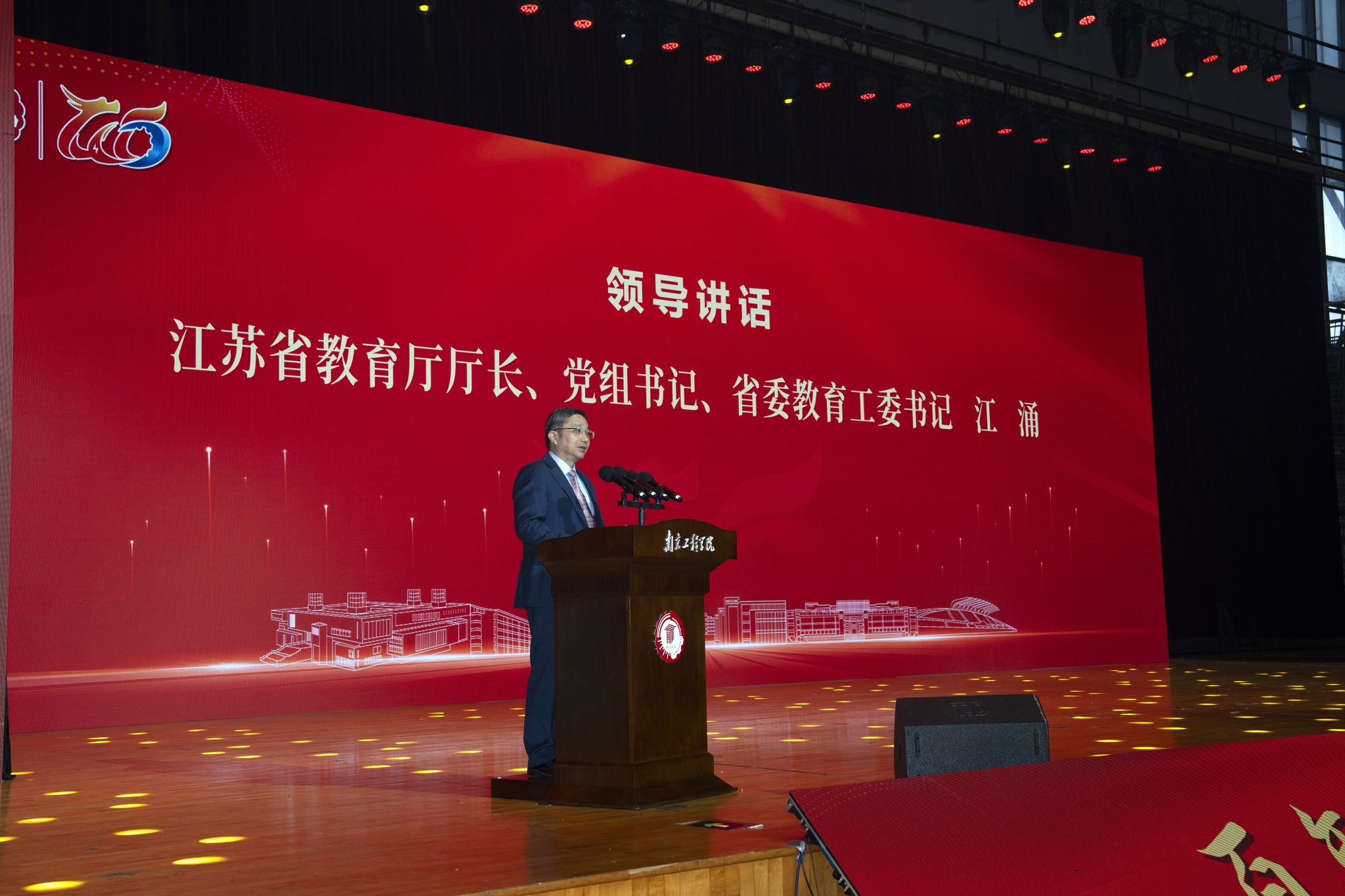 江涌代表江苏省教育厅向大会的召开表示热烈祝贺,向长期以来关心江苏高等教育及南京工程学院事业发展的各级领导、各界朋友表示衷心感谢。他希望学校全面贯彻党的二十届四中全会精神,以办学110周年为崭新起点,坚守育人初心,在培养时代新人上展现新作为;锐意改革攻坚,在建设一流应用型大学上迈出新步伐;深化产教融合,在服务区域发展上实现新突破,奋力开创“国内领先、特色鲜明的一流应用型大学”建设新局面。他表示,省教育厅将进一步加大关心支持力度,努力为学校高质量发展创造有利条件。