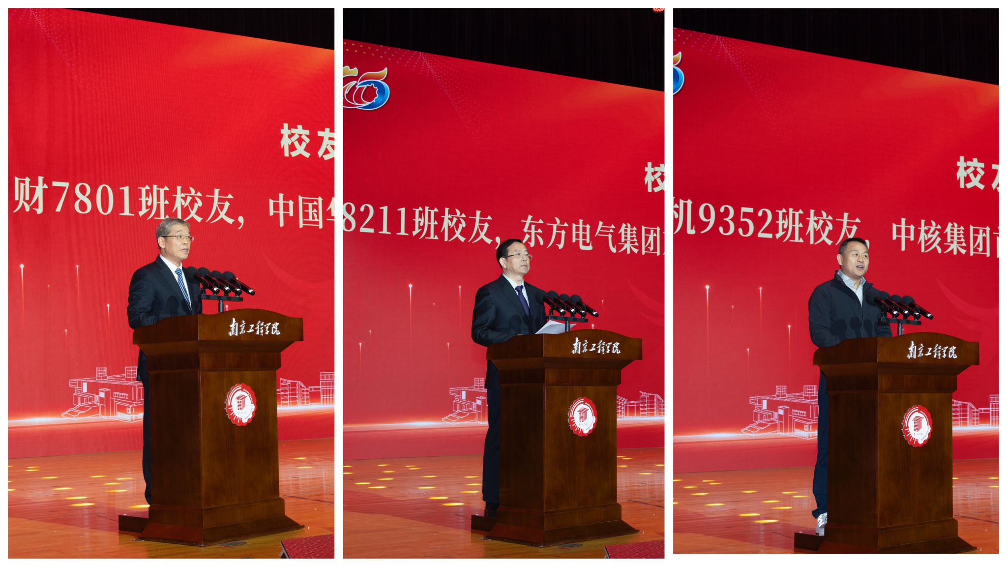 财7801班校友、中国华能集团有限公司原总经理黄永达,铸8211班校友、东方电气集团东方电机有限公司党委书记、董事长刘辉,机9352班校友、中核集团首席技师、大国工匠、中国核电首席专家何少华在发言中深情回忆了求学美好记忆,感恩母校教会自己如何做人、如何做事、如何做学问,并表示将一如既往地关注和支持母校发展,期待母校未来再创辉煌。