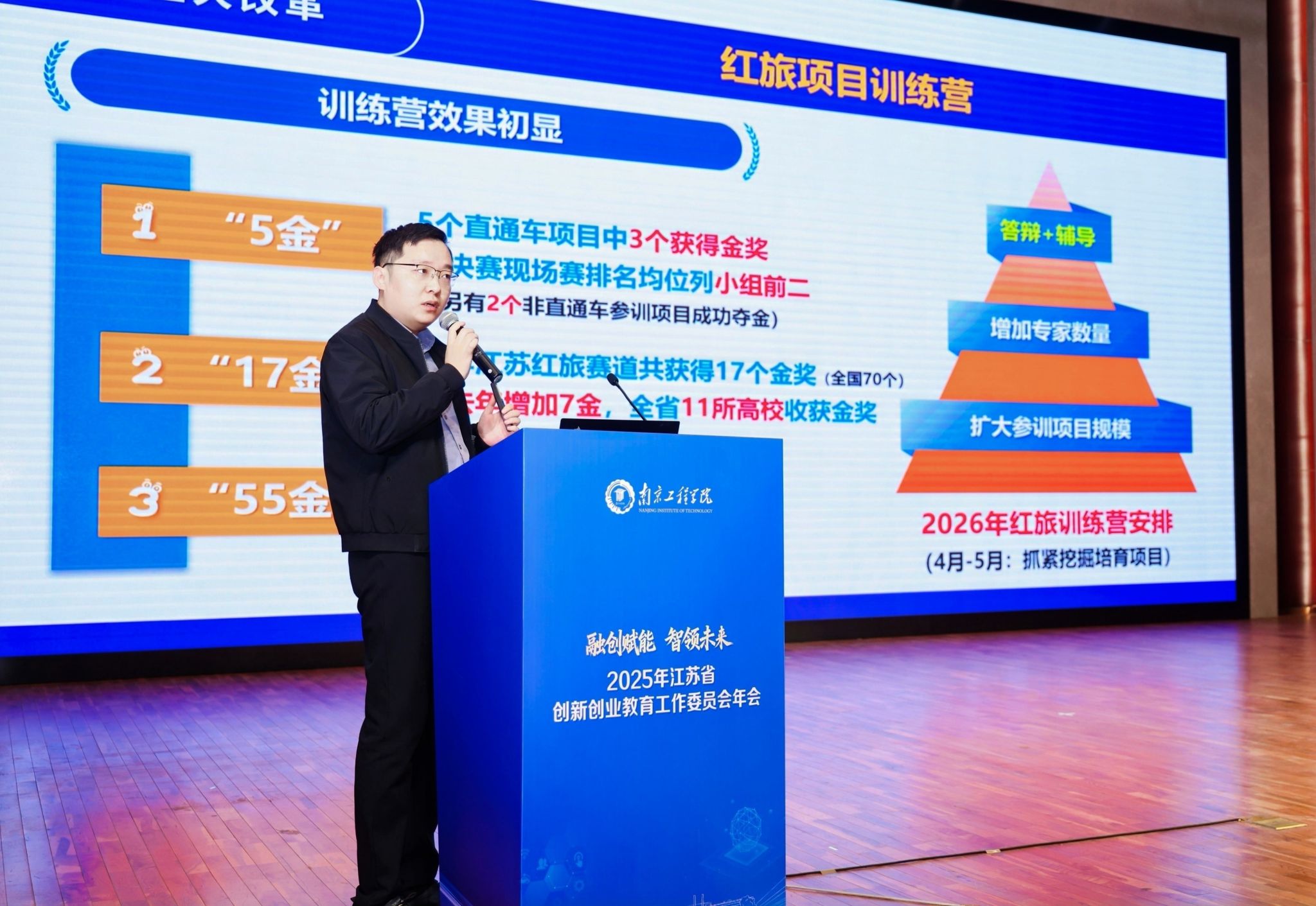 12月10-11日,2025年江苏省创新创业教育工作委员会年会在南京工程学院召开。会议以“融创赋能 智领未来”为主题,由江苏省高等学校教学管理研究会创新创业教育工作委员会主办、我校承办,旨在纵深推进高校创新创业教育改革及校院企产教融合,探索专创融合内涵式发展路径。