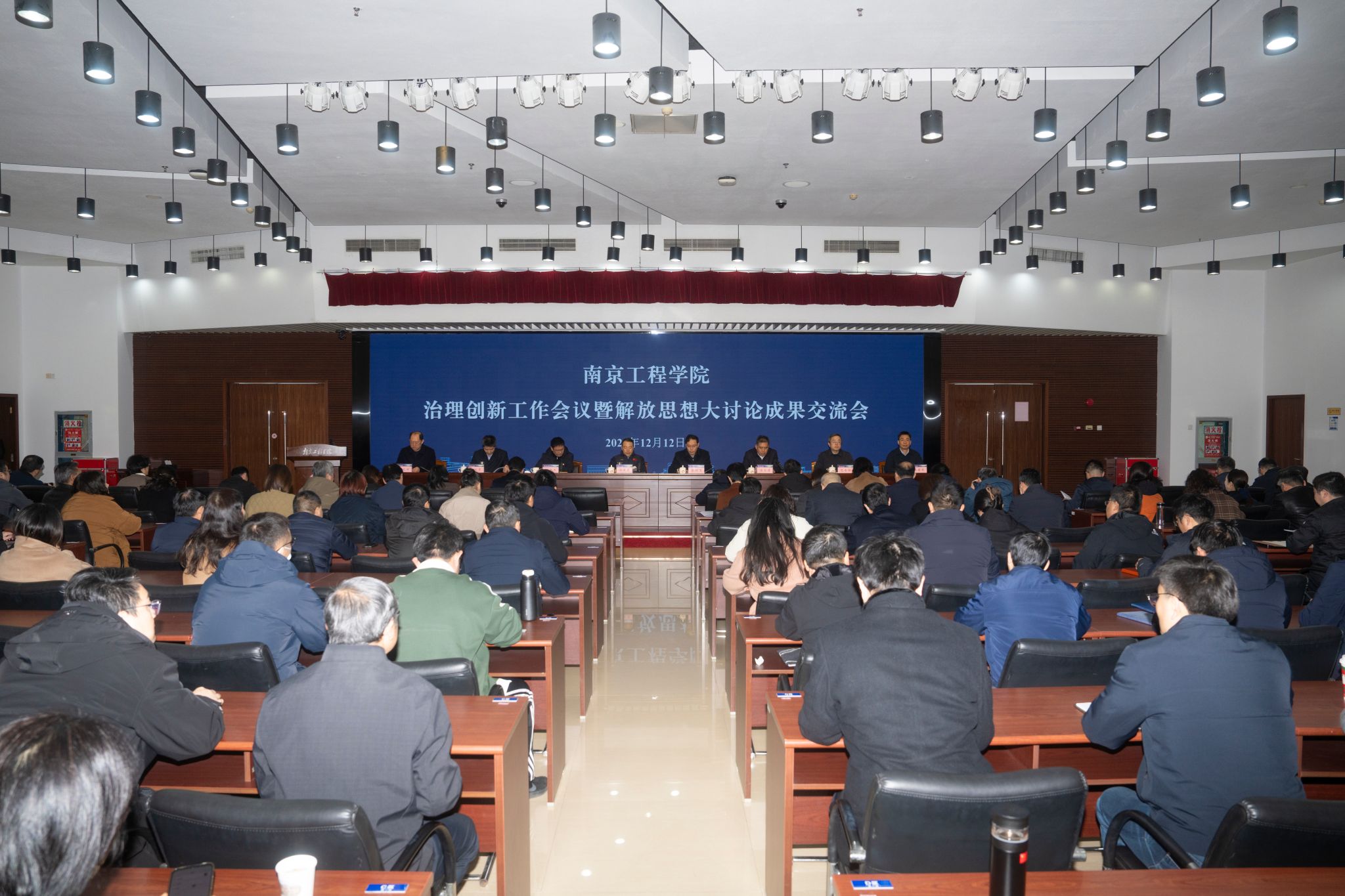 12月12日上午,学校召开治理创新工作会议暨解放思想大讨论成果交流会,深入贯彻党的二十届四中全会精神,系统总结“矢志登峰、勇争一流”解放思想大讨论成效,部署推进学校内部治理体系和治理能力现代化建设各项工作。党委书记孙爱武,党委副书记、校长张仰飞等全体在校领导出席会议。派驻纪检监察组组长、党委常委、纪委书记张玉清主持会议。
