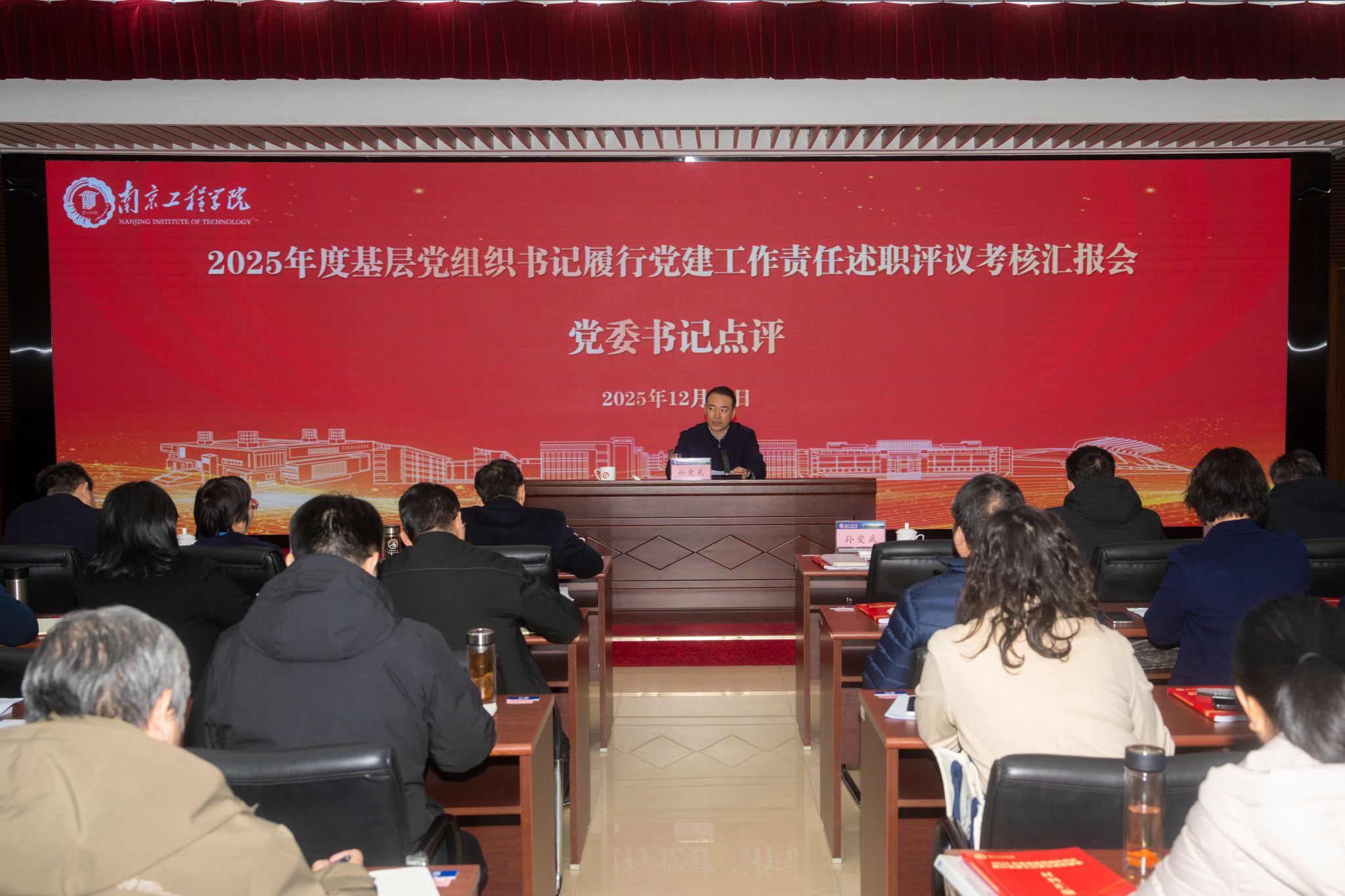 12月31日,学校在至勤楼·行政中心二楼多功能厅举行2025年度基层党组织书记履行党建工作责任述职评议考核汇报会。党委书记孙爱武,党委副书记、校长张仰飞等全体在校校领导出席会议,各二级基层党组织书记、机关职能部门负责人以及机关党支部书记参加会议。