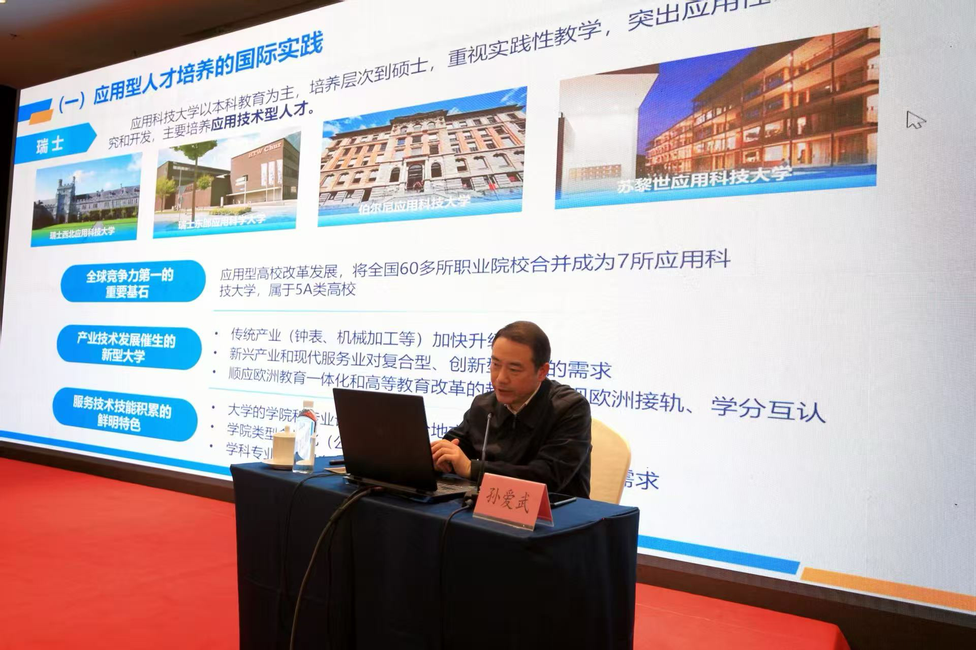 孙爱武以“能力导向、项目载体、创新驱动——应用创新型人才培养进阶之路”为题,借鉴国际应用型人才培养实践经验,从教育强国战略出发,结合职教本科试点评估情况,提出应用型高校和职业本科高校必须找准办学定位和服务领域,构建“需求牵引-供给适配-价值反馈”产教融合协同育人路径,加强应用创新型人才培养,才能推动学校事业高质量发展实现新跨越。报告中,他重点阐述了学校主体赋能、路径赋能、空间赋能、目标赋能“四维赋能”应用创新型人才培养体系,并从学科专业一体建设、教学科研协同育人、师资团队打造、党建引领“一融双高”等方面介绍了学校的实践成果与育人成效。