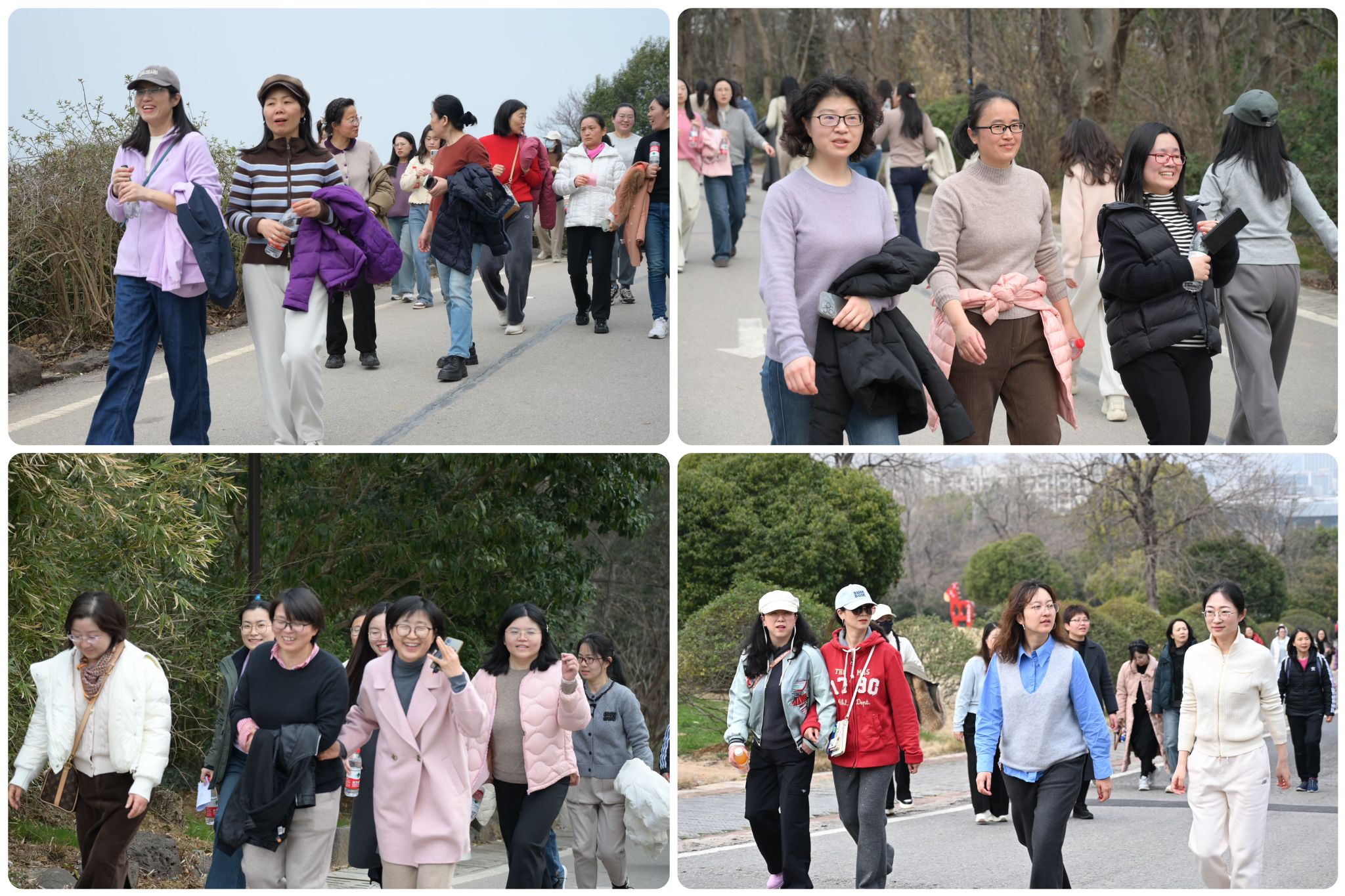 随着发令枪响,健身行活动正式拉开帷幕。女教职工们精神饱满、步履矫健,沿着蜿蜒山路拾级而上。初春的方山草木萌发、空气清新,大家三五成群,或畅谈工作感悟,或分享生活趣事,欢声笑语洒满山间。