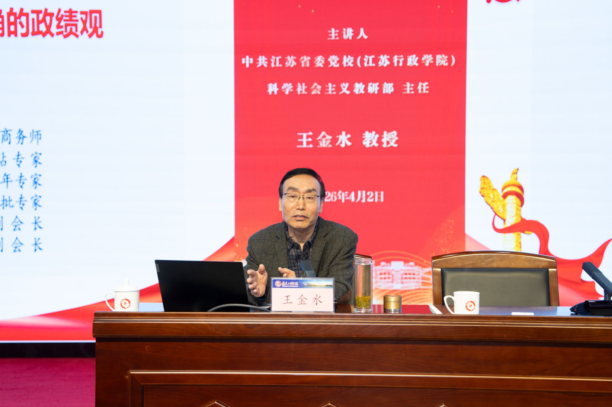王金水以《牢固树立和践行正确政绩观》为题作辅导报告。他用详实的资料、生动的语言、典型的案例和严谨的逻辑,深刻解答“政绩为谁而树、树什么样的政绩、靠什么树政绩”的根本问题,对广大党员干部深刻理解正确政绩观的科学内涵和实践要求具有指导意义。
