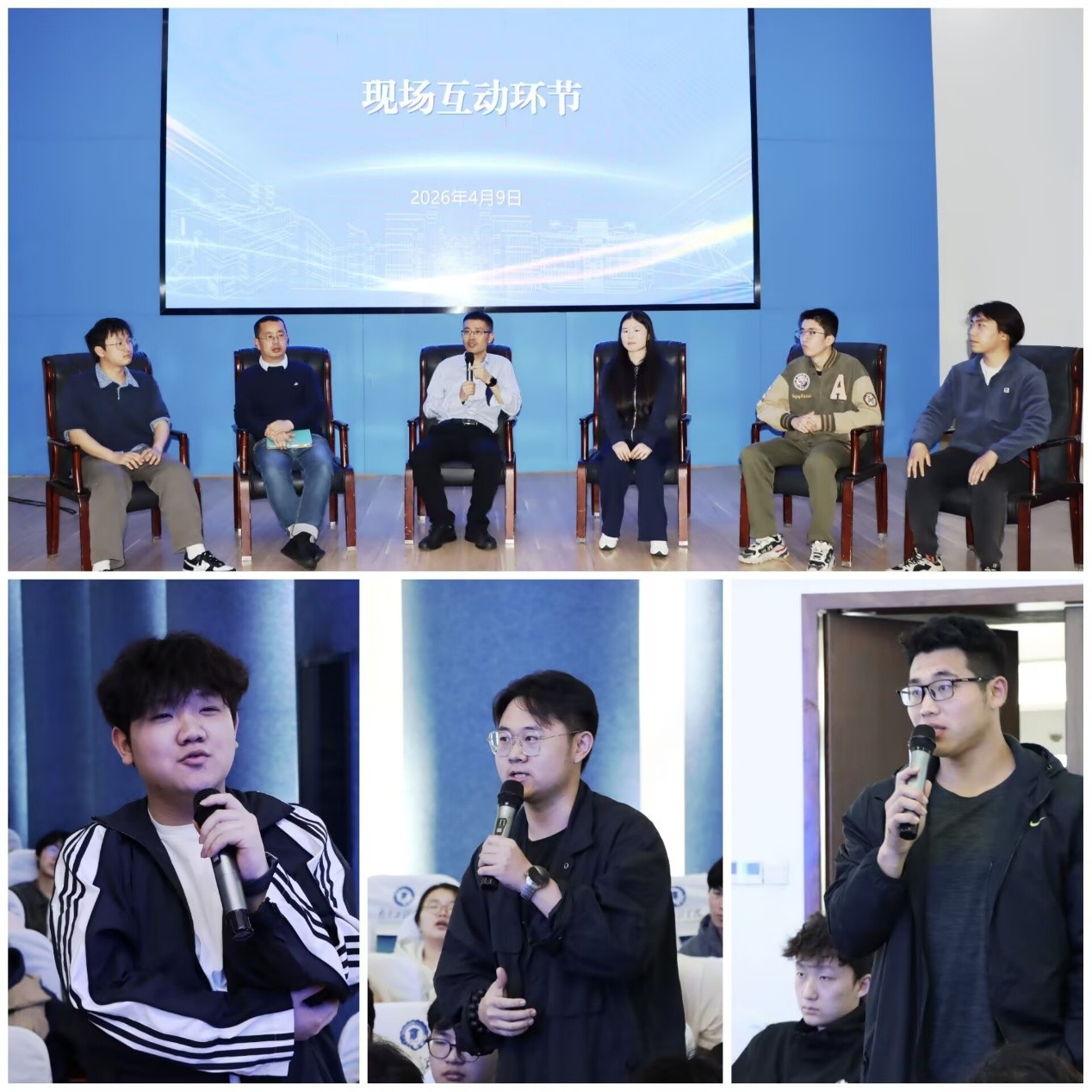 讲座后,同学们就AI工具普及对技术岗位能力要求的变化、企业看重的软实力、未来高成长性岗位等问题踊跃提问。张成光与校友李树栋结合自身经验逐一解答,现场气氛热烈。
