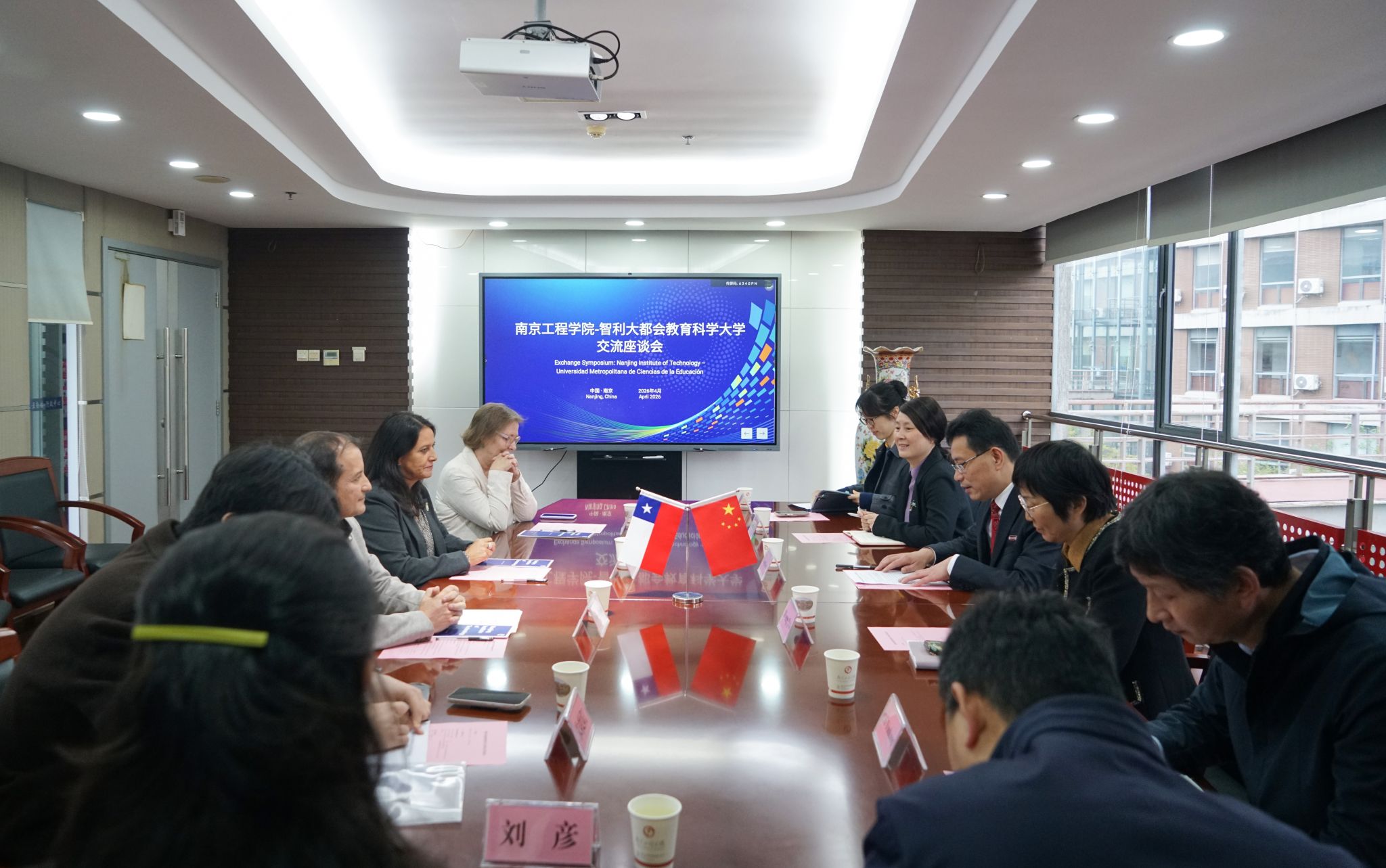 张仰飞对代表团到访表示热烈欢迎,并简要介绍了我校办学历史、学科特色及国际化发展成果。他指出,当前中国与南美的教育合作已进入机制化、平台化新阶段,南京工程学院与智利大都会教育科学大学正式建立合作关系,标志着我校合作版图正式向南美洲拓展。他希望双方在师生交流互访、定制化培训、课题共研、联合实验室共建等方面加强合作、携手共进。