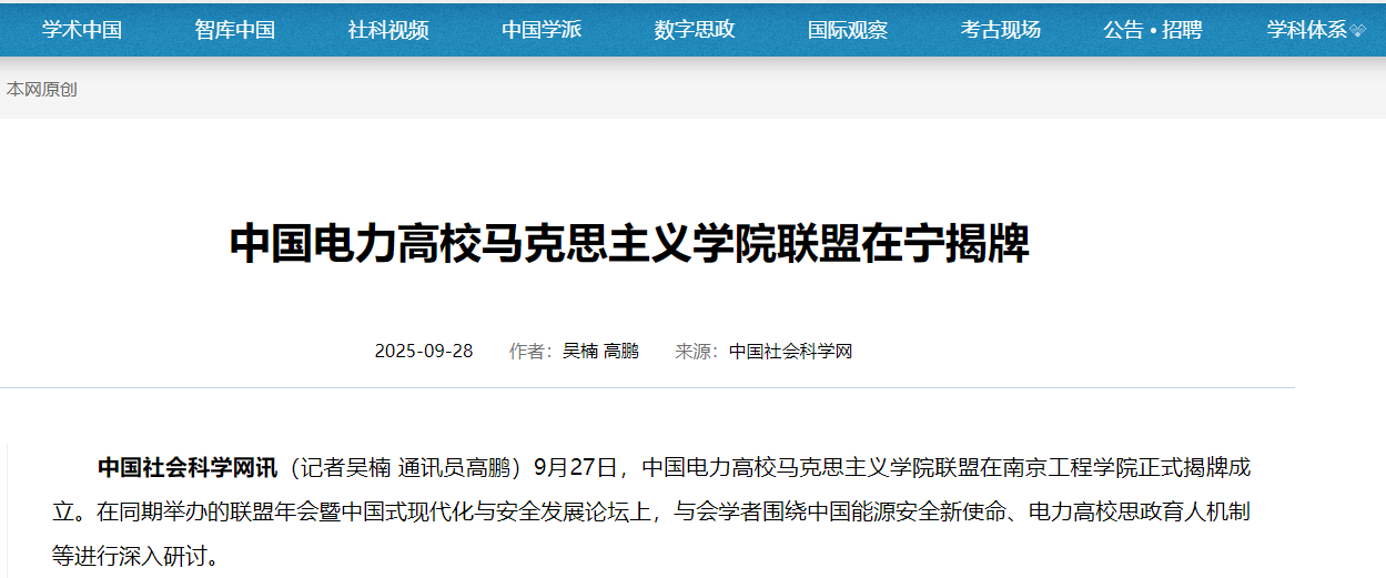 中国社会科学网讯(记者吴楠 通讯员高鹏)9月27日,中国电力高校马克思主义学院联盟在南京工程学院正式揭牌成立。在同期举办的联盟年会暨中国式现代化与安全发展论坛上,与会学者围绕中国能源安全新使命、电力高校思政育人机制等进行深入研讨。