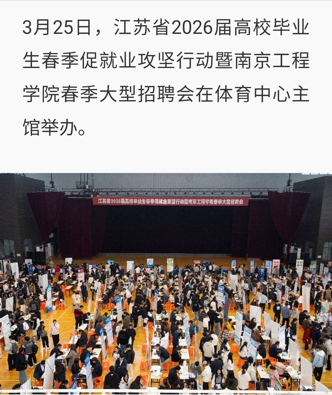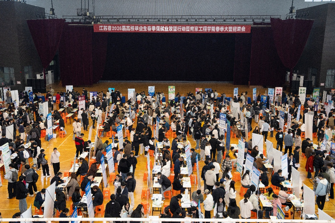 3月25日,江苏省2026届高校毕业生春季促就业攻坚行动暨南京工程学院春季大型招聘会在体育中心主馆举办。