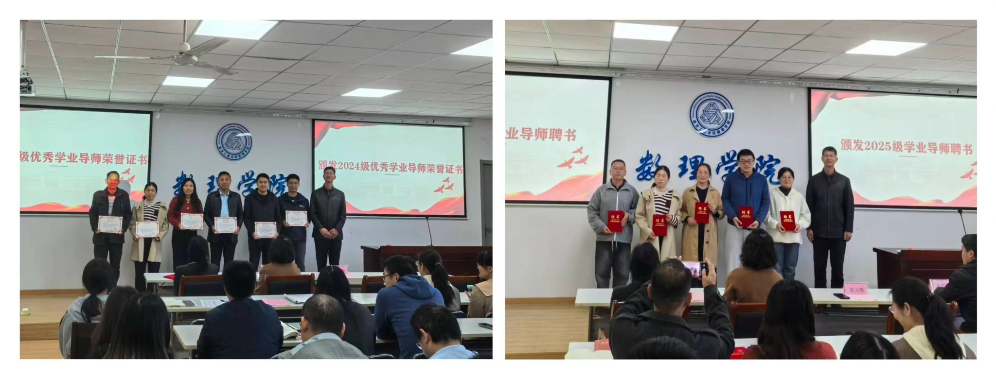11月5日,数理学院在文理楼B302举行2025级本科生学业导师制启动仪式暨优秀导师表彰大会。学院党总支书记张兴丽,党总支副书记、院长崔云康,副院长张康群、银龄辅导员史志仙以及导师和学生代表参加会议。