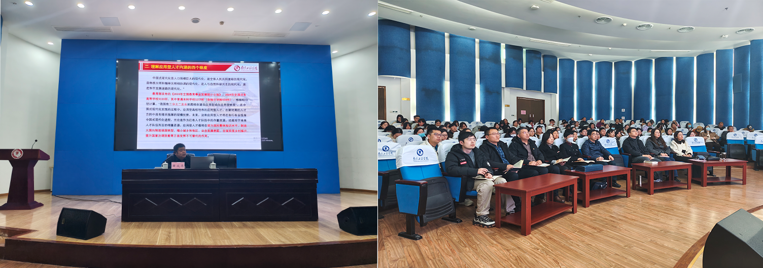 为深入学习贯彻党的二十届四中全会精神,12月3日下午,商学院、图书馆、档案馆与继续教育学院联合举办学习党的二十届四中全会精神专题讲座。马克思主义学院黄成亮博士以“宁拙毋巧 宁朴勿华:应用型人才助力‘高水平科技自立自强’”为主题,为师生带来分享。