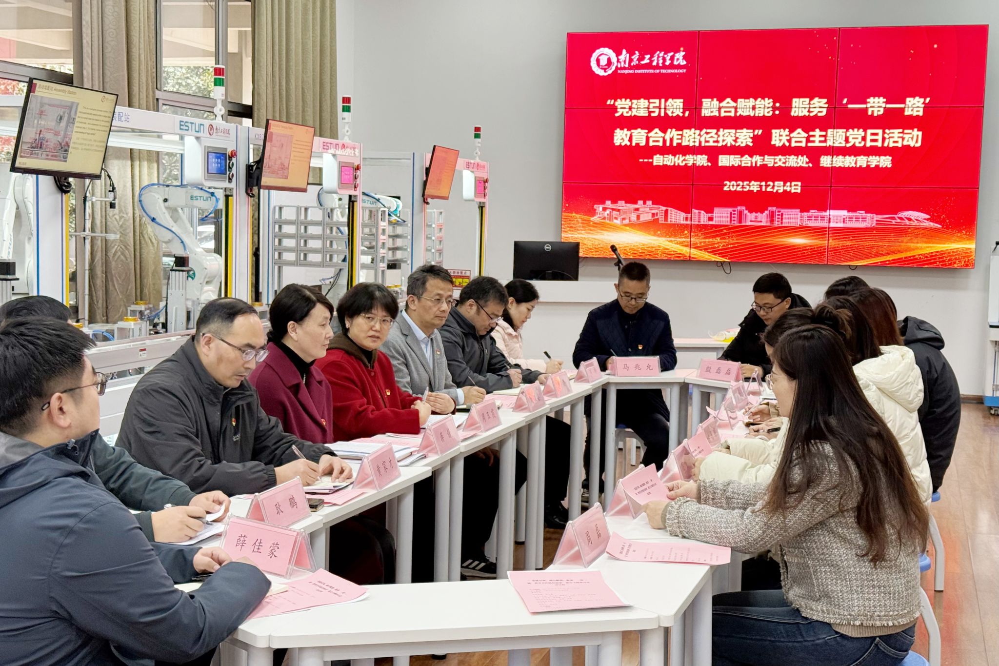 12月4日下午,自动化学院党委、继续教育学院直属党支部、国际合作与交流处党支部联合开展“党建引领,融合赋能:服务‘一带一路’教育合作路径探索”主题党日活动。机关党委书记周玉霞,国际合作与交流处处长蒋静,继续教育学院院长罗俊,自动化学院党委书记刘汉忠,院长黄家才及党员代表参加活动。
