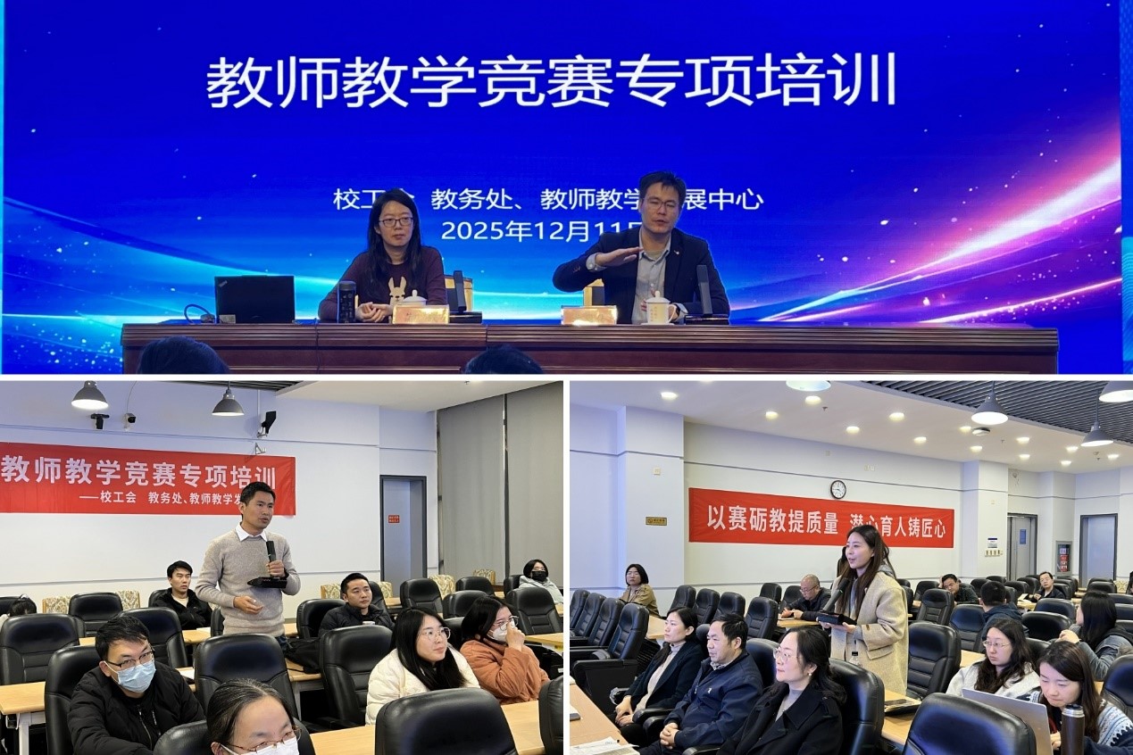 为全面提升教师教学创新与竞赛水平,12月11日,校工会联合教务处、教师教学发展中心在至勤楼·行政中心学术报告厅举办教师教学竞赛专项培训,围绕第六届全省高校青年教师教学竞赛及第六届全国高校教师教学创新大赛,特邀第五届省青教赛一等奖获得者南京大学黄周传、蒲殷两位教授开展赛前指导。学校第十三届青年教师讲课大赛获奖教师代表、优秀新进教师以及备赛教师约百人参加本次培训。