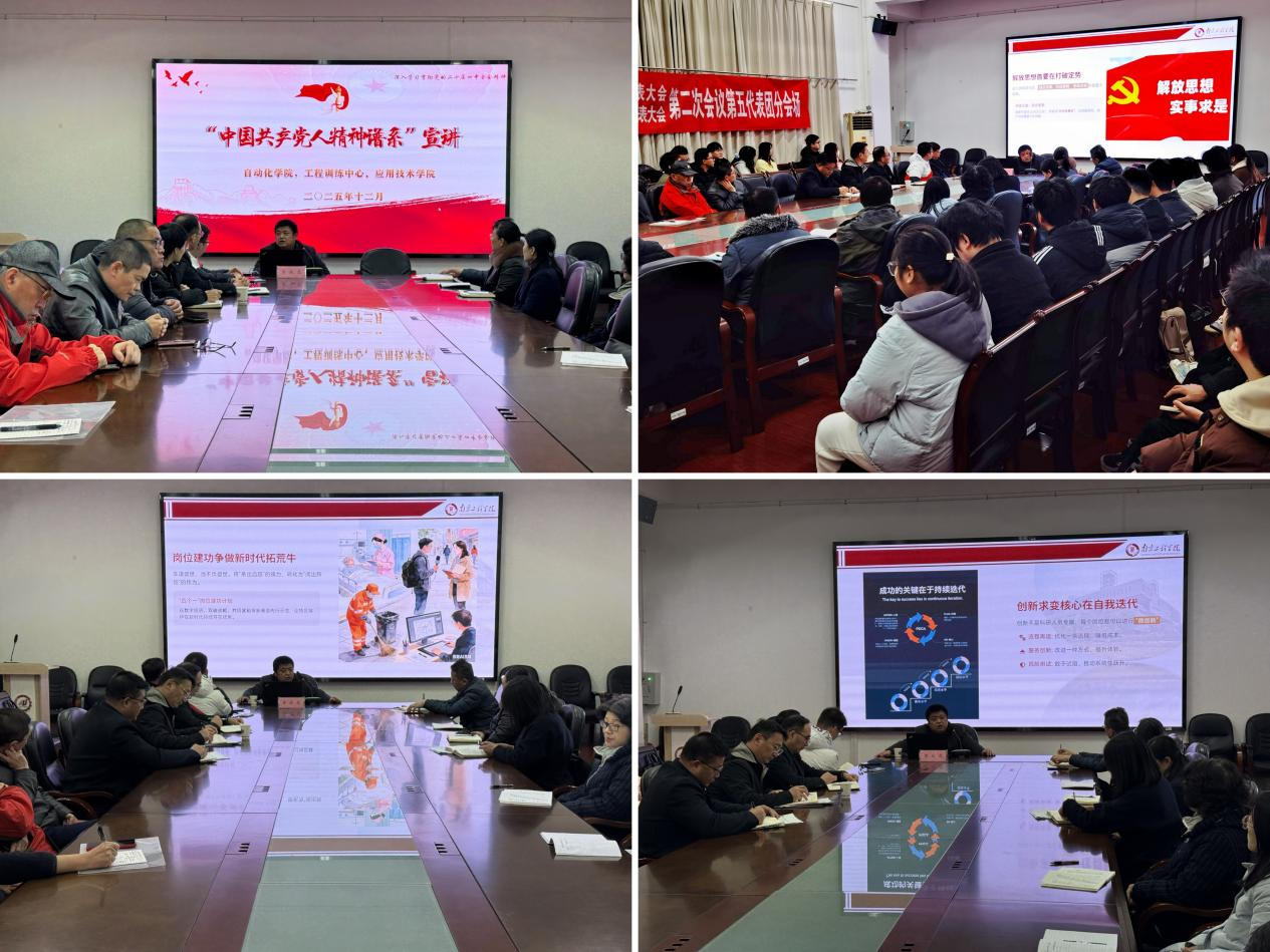 为深入学习贯彻党的二十届四中全会精神,从伟大建党精神中汲取奋进力量,12月16日,自动化学院联合工程训练中心、应用技术学院,举办“中国共产党人精神谱系”专题报告会。学院邀请马克思主义学院副教授、硕士生导师黄成亮作题为“特区精神的生成与传承——‘中国共产党人精神谱系’主题学习感悟”的专题报告。自动化学院、工程训练中心、应用技术学院的部分师生党员及骨干代表参加。