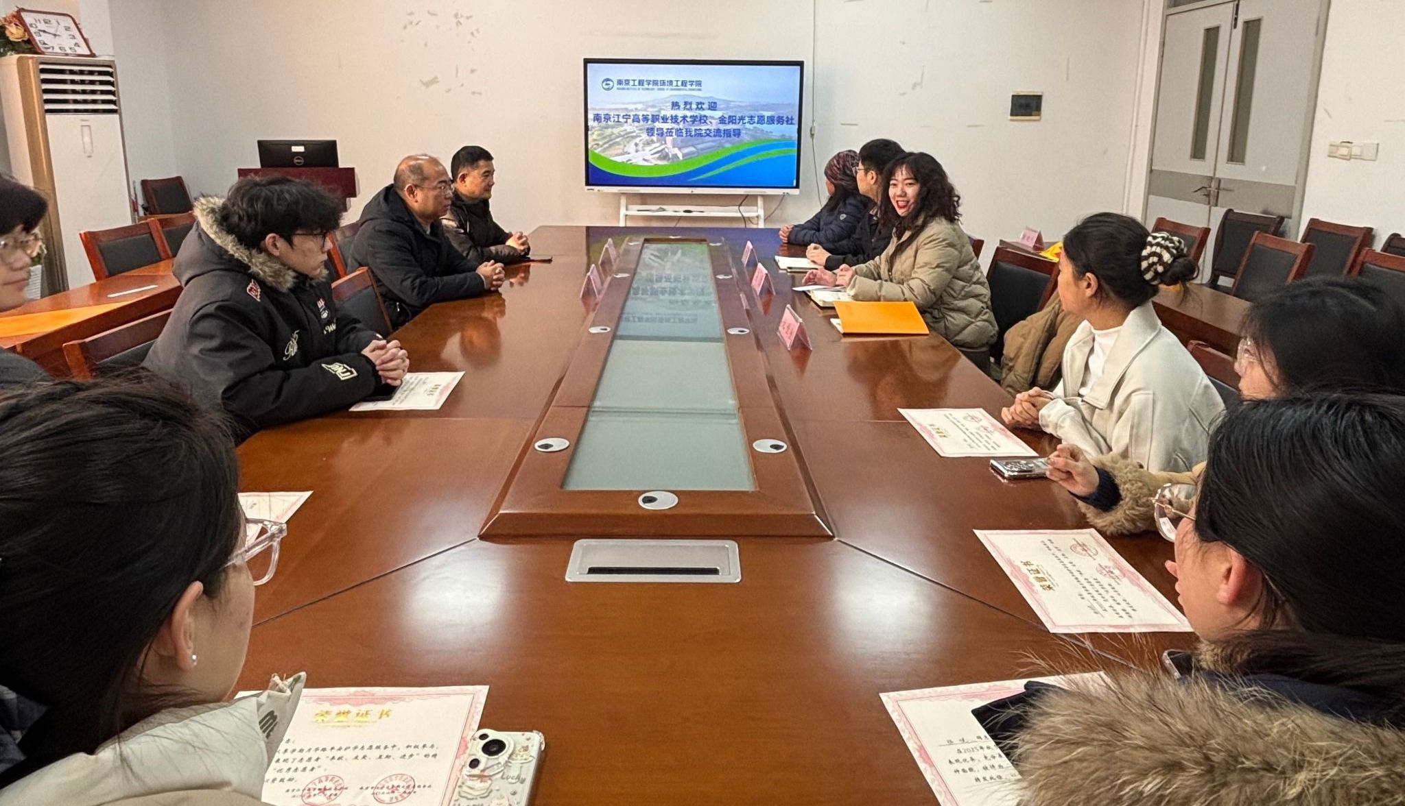 为共筑校园安全防线,环境工程学院联合南京江宁金阳光志愿服务社,持续在月华路小学、南京江宁高等职业技术学校开展“平安护学”志愿行动。1月8日,南京江宁高等职业技术学校与江宁金阳光志愿服务社专程赴环境工程学院举行表彰仪式。学院党总支副书记吴为、学工办教师及学生代表参加活动。