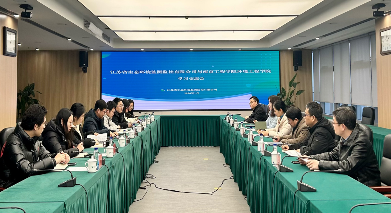在江苏省生态环境监测监控有限公司,副总经理陈高详细介绍了公司核心业务、研发方向,以及大数据分析、生态监测等领域的战略规划。黄赛平、吴功德介绍了学校办学历史与发展现状,着重介绍学院显著科研成果与核心技术优势,期待双方在产学研项目合作、科技成果转化及实习就业基地建设等方面深度合作。双方一致同意将共同探索产教融合新路径,在环境监测技术研发、智慧环保平台建设等领域开展联合攻关。