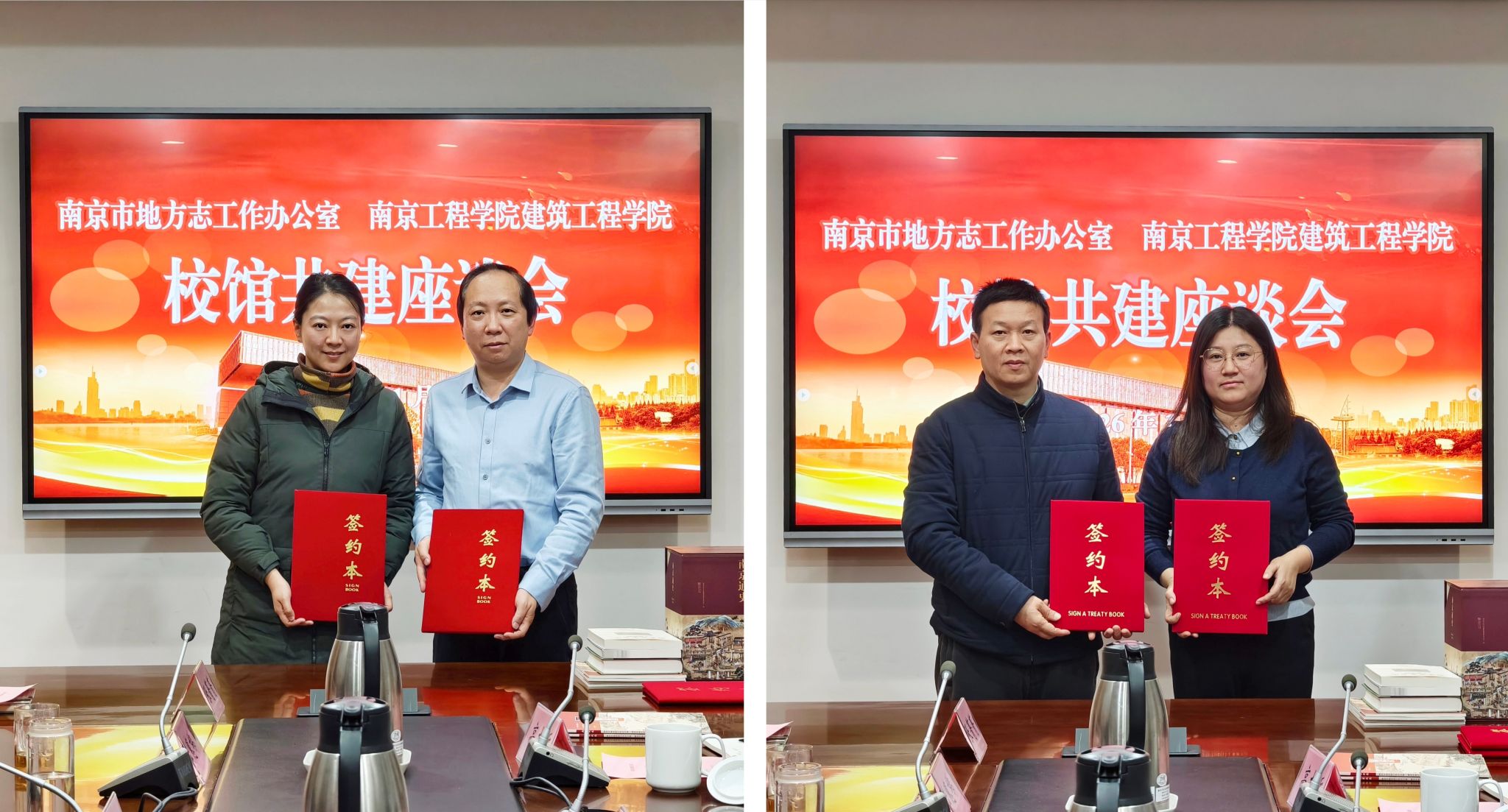 汤林平详细介绍了南京市地方志工作的整体情况、功能定位及工作理念,强调地方志是城市历史的根脉所系,与建筑学科有着天然的联系,希望以此次为契机,推动历史文化资源与高校人才培养、科研创新深度结合。杨涛、张士萍分别介绍了学校和学院相关情况,表示学院多个专业与地方志工作高度契合,未来可在课程思政、课题研究、志愿服务、文化传播等方面开展多形式、深层次的合作,引导学生在历史文化的熏陶中增强专业使命感与社会责任感。会上,双方签署了《党组织共建协议书》与《共建大学生实践基地协议书》,并就党建共建形式、大学生社会实践开展、历史建筑研究、文化传播合作等议题交流探讨。