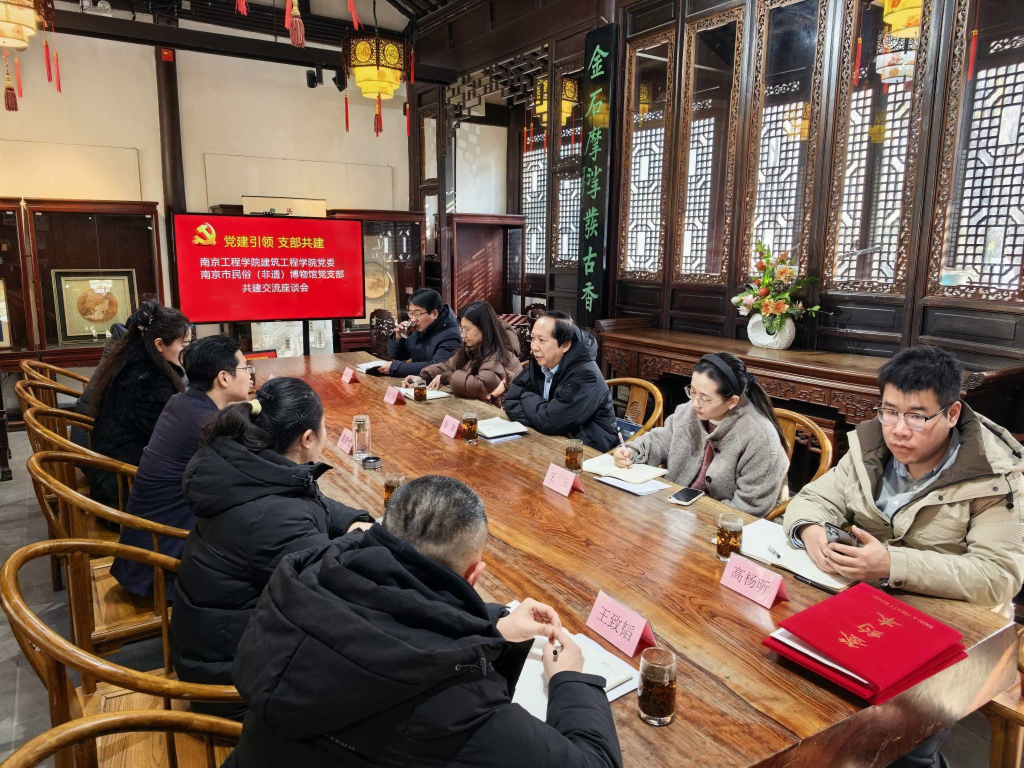 为推动校地党建深度融合,打造优质实践育人载体,近日,建筑工程学院党委书记杨涛、院长张士萍及教师代表赴南京市民俗博物馆(甘熙故居)调研交流,并开展党组织共建活动。南京市民俗博物馆馆长黄贵成,副馆长刘媛之、施慧及相关人员参加共建活动。