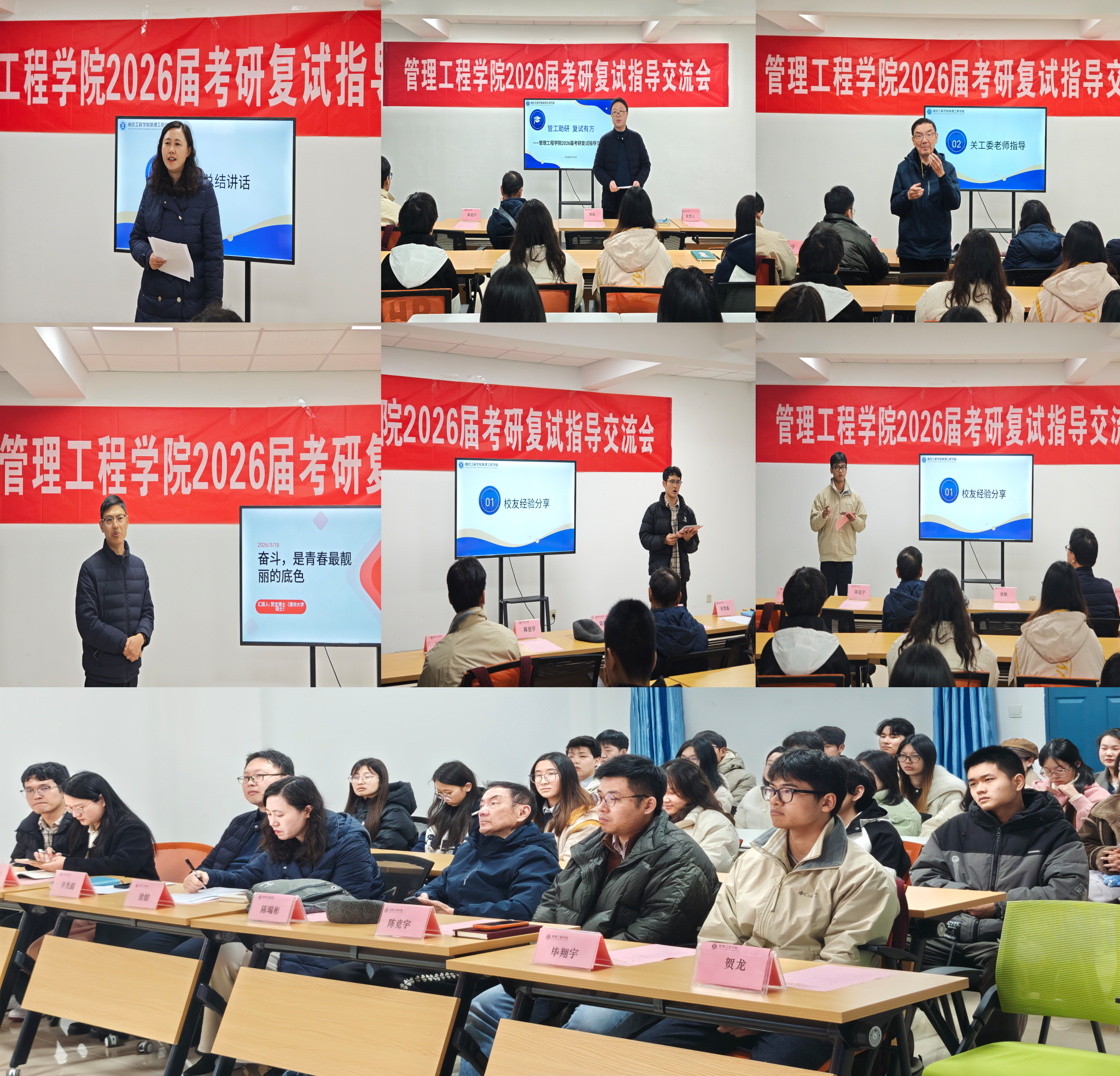 本次活动紧扣考研复试关键环节,内容务实、针对性强,既有朋辈的经验分享,也有老教师的关心叮嘱,帮助同学们“点满技能”“轻装上阵”。管理工程学院将持续聚焦学生成长需求,进一步做细做实考研指导与服务工作,助力学生成长成才和升学深造。