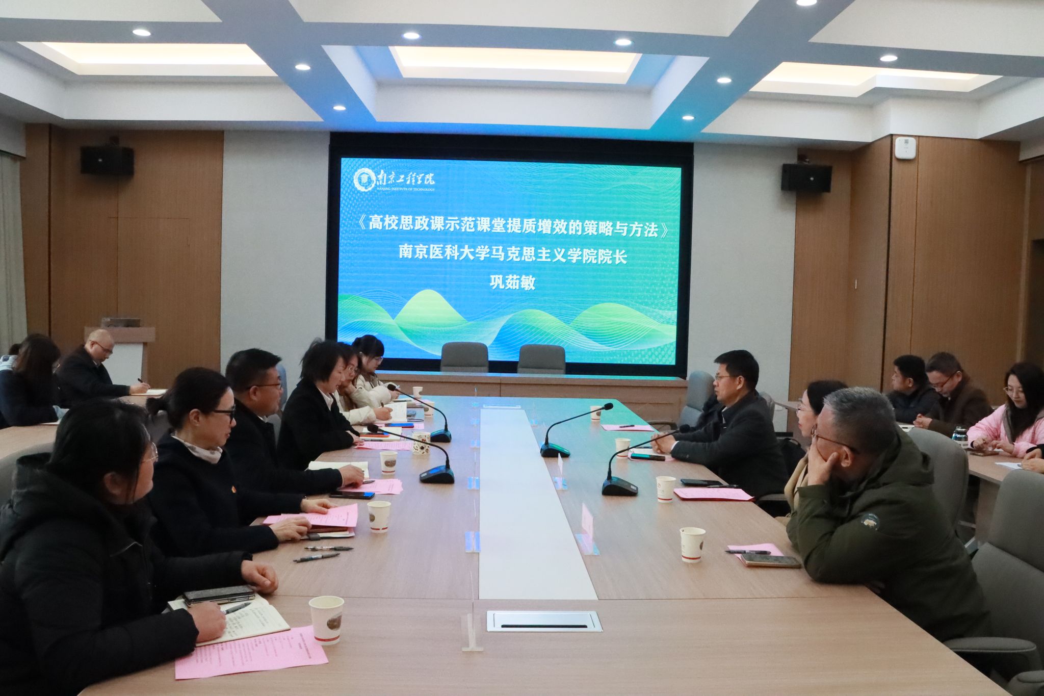 马克思主义学院党委书记石贵舟在欢迎辞中指出,此次两院结对共建是落实立德树人根本任务、加强马克思主义学院建设的重要举措,期待以共建为契机,实现资源共享、优势互补、教研互促、合作共赢,共同推动思政教育高质量发展。党委副书记、院长龙永红详细介绍了学院发展历程、学科特色、师资建设及工科思政育人实践成果,展现了学院在思政课改革、课程思政融合等方面的探索成效。南京医科大学马克思主义学院院长巩茹敏则分享了学院在中共党史党建研究、人文医学交叉学科建设、思政课示范课堂打造等方面的先进经验,为两院合作奠定了坚实的交流基础。