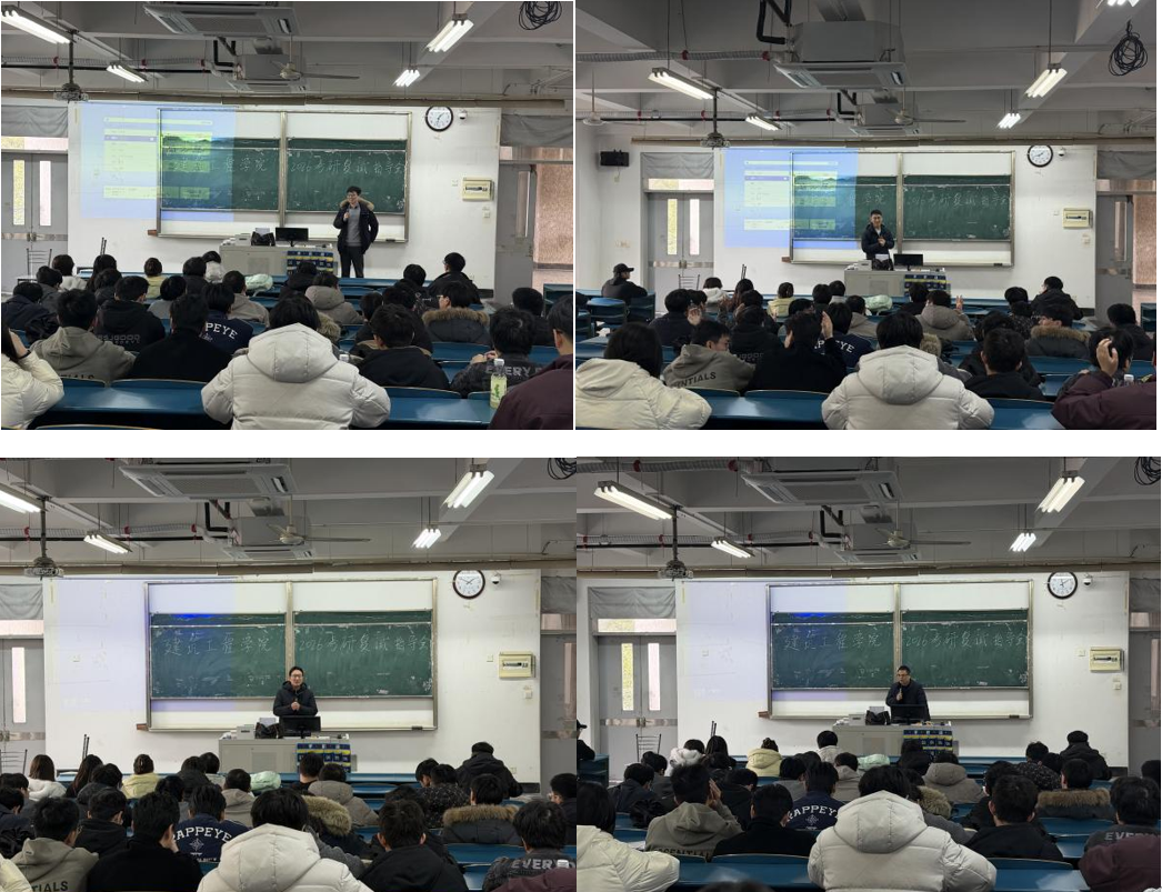 3月15日下午,建筑工程学院在设北213教室举办2026届考研复试经验交流活动。曹石、闵信哲、熊东旭、潘大荣四位系主任担任主讲,为考研学子提供复试指导与调剂建议。