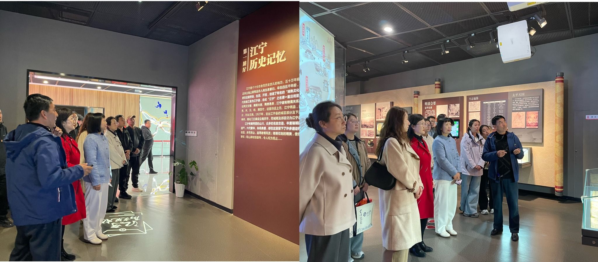在讲解员引导下,师生依次参观“历史记忆”“红色记忆”“发展记忆”三大主题展厅,近距离感受红色印记。展厅内,革命文献、历史照片、影像资料全景式展现了中国共产党在江宁的奋斗历程,生动还原新四军抗战故事与革命先烈英勇事迹,清晰呈现历代建设者以实干担当推动江宁从农耕文明向现代发展的变迁轨迹。师生认真聆听、驻足交流,在沉浸式体验中感悟初心使命。