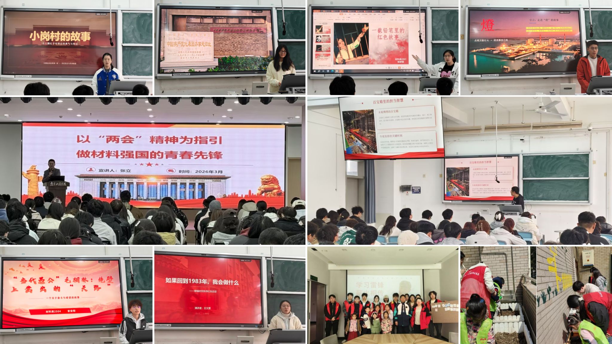 此外,师生们将红色教育的课堂延伸到了校外。青年志愿者走进北苑社区党群服务中心,面向社区小朋友开展雷锋精神宣讲与实践体验活动。志愿者们用漫画、小故事等生动形式讲述雷锋事迹,并手把手带领孩子们种植向日葵和菊花,让小朋友们在劳动中体悟奉献与成长的快乐,也让大学生志愿者在服务中深化了对雷锋精神时代内涵的理解。