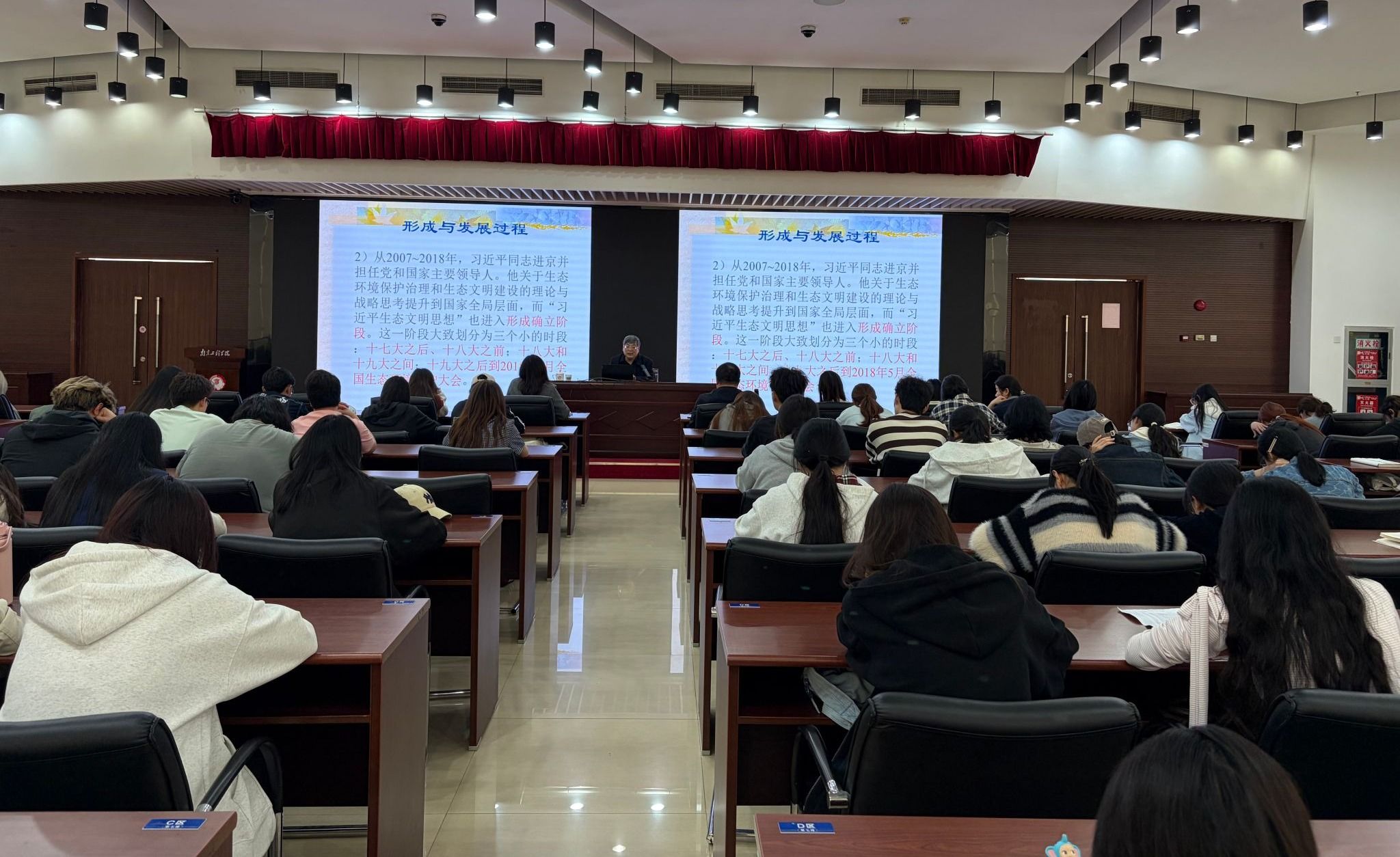 4月10日,马克思主义学院邀请北京大学马克思主义学院教授、北京大学习近平生态文明思想研究中心主任郇庆治作题为“习近平生态文明思想及其党的二十大以来的丰富发展”的学术讲座。学院党委书记石贵舟主持,相关教研室教师及近百名学生聆听。