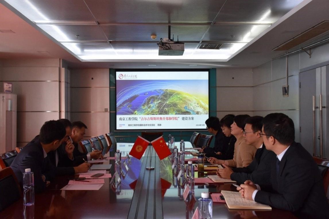 On October 28–29, the delegation from Osh State University in Kyrgyzstan visited Nanjing Institute of Technology (NJIT). The two universities held talks with Phoenix Vocational Education Company and Nanjing Vocational College of Transportation Technology. The discussions focused on jointly launching overseas educational programs, enhancing cultural and people-to-people exchanges between China and other countries, and promoting industry-academia-research-application collaboration.