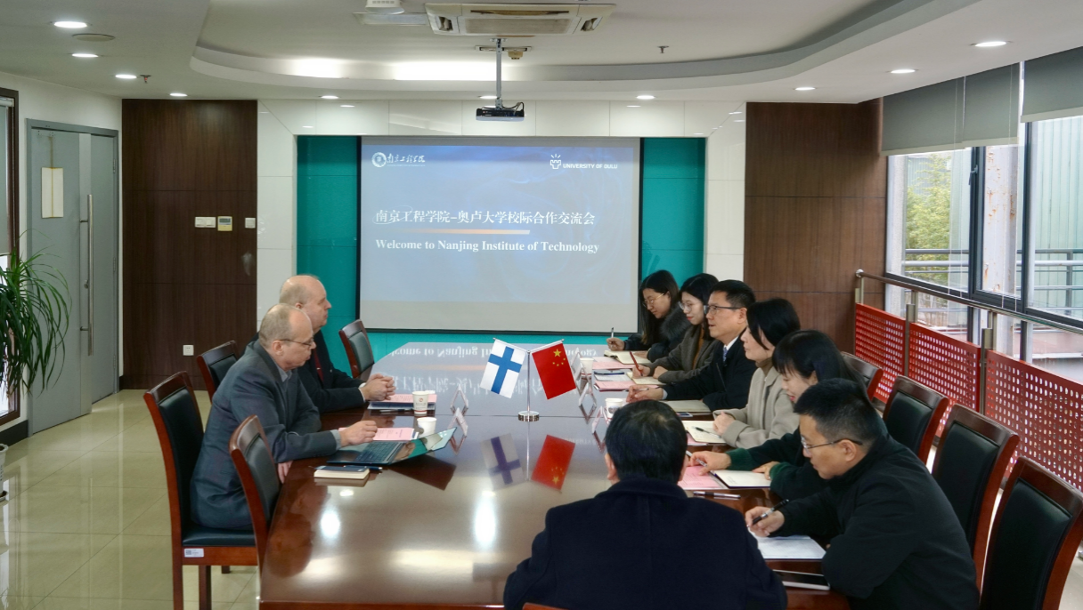 From December 9 to 14, Vesa-Matti Sarenius, Director of Academic Affairs of the University of Oulu in Finland, along with Professor Jouni Markkula from the Faculty of Information Technology and Electrical Engineering and Vice Dean of the NJIT-Oulu School, visited Nanjing Institute of Technology. Deputy Chair Pu Lijie met and held discussions with the delegation led by Vesa-Matti Sarenius.