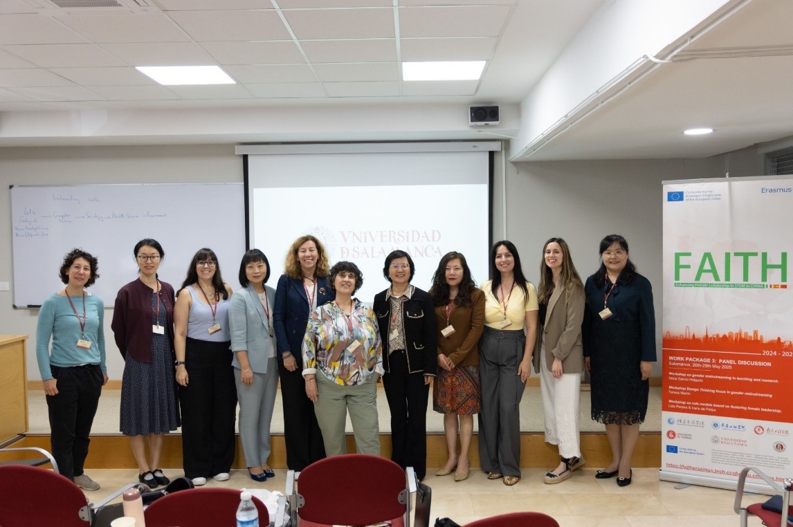 From May 25 to 31, 2025, a delegation led by Wang Qun, Member of the University Council and Vice President of Nanjing Institute of Technology, visited the University of Salamanca in Spain to participate in the academic seminar of the Erasmus+ project “Enhancing Female LeAdership In STEM in CHINA (FAITH).” The event brought together professors and scholars in STEM fields from China, Spain, and Italy to explore innovative practices in cultivating female talent and leadership in STEM disciplines.