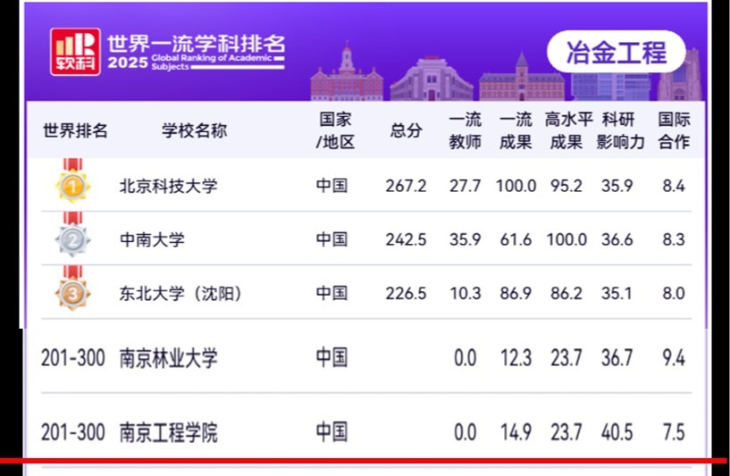我校冶金工程学科跻身2025软科世界一流学科排名