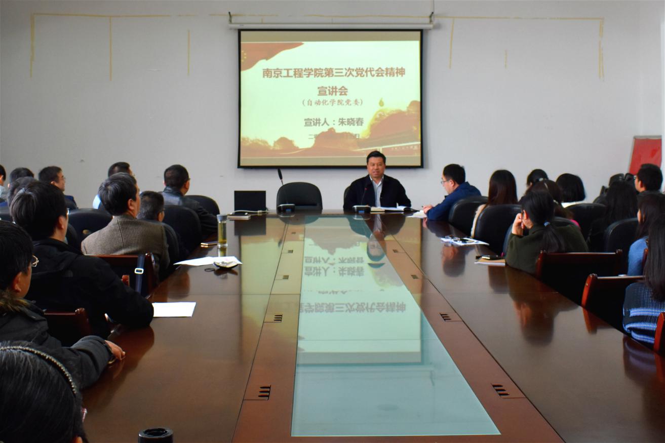 为深入学习贯彻学校第三次党代会精神,3月15日中午,自动化学院在工程实践中心4-302会议室召开全体教职工大会,校党委常委、副院长朱晓春出席大会并宣讲我校第三次党代会精神,会议由该院党委书记屠立忠主持。