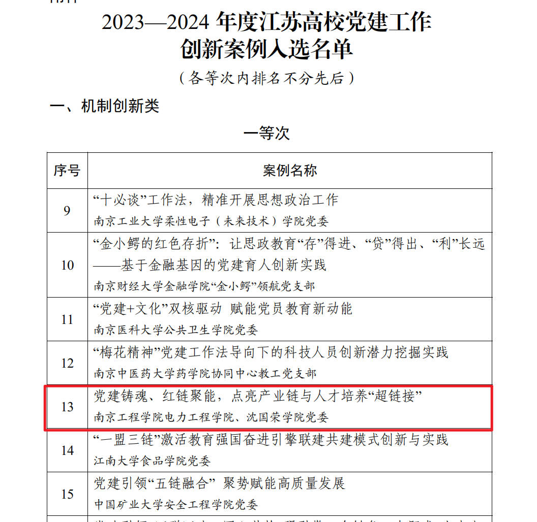电力工程学院、沈国荣学院党委申报的案例“党建铸魂、红链聚能,点亮产业链与人才培养‘超链接’”荣获机制创新类一等次,该案例创新构建了从“单向发力”到“链式协同”的立体化赋能矩阵。材料科学与工程学院党委申报的“红链赋能铸新材,料聚先锋勇攀登”荣获活动创新类二等次,该案例聚焦新材料产业链需求,构建了“理论筑基-红链牵引-先锋攻坚”三维体系,促进“产学研用”的融合 。通信与人工智能学院、集成电路学院党委申报的案例“红链四维融合:信息技术全链贯通赋能学院高质发展”与计算机工程学院党委申报的“‘四化协同·三维联动’‘微光铸魂’主题党日活动”分别荣获机制创新类、活动创新类三等次。