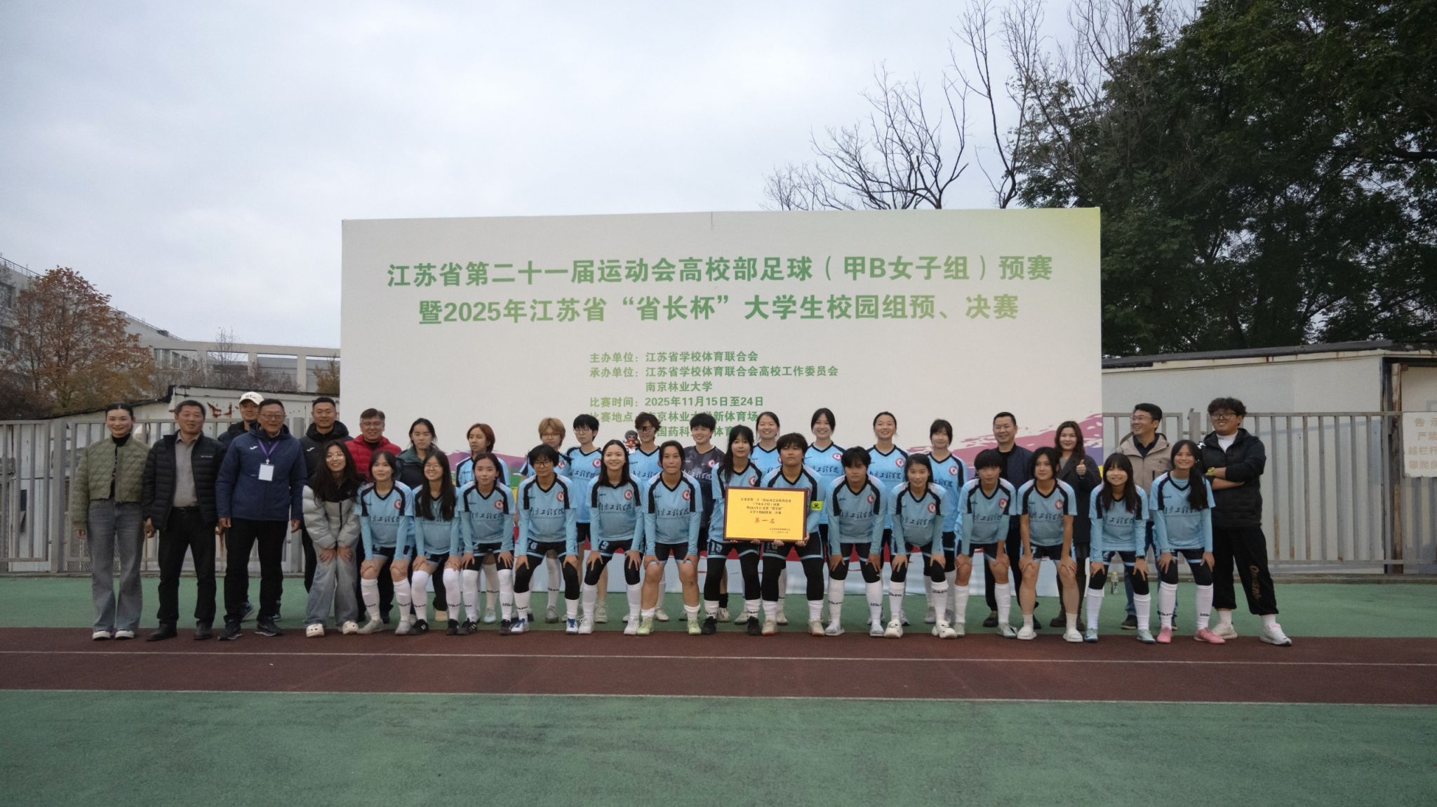 11月23日下午,江苏省第二十一届运动会高校部足球(甲B女子组)预赛暨2025年“省长杯”大学生校园足球联赛(校园女子组)预决赛在南京林业大学圆满闭幕。我校女子足球队在领队赵伟,教练员赵泽宇、万勃的带领下发挥出色,以全胜战绩成功卫冕,并顺利取得第二十一届省运会决赛阶段参赛资格。南京理工大学与南京医科大学分获亚军、季军。