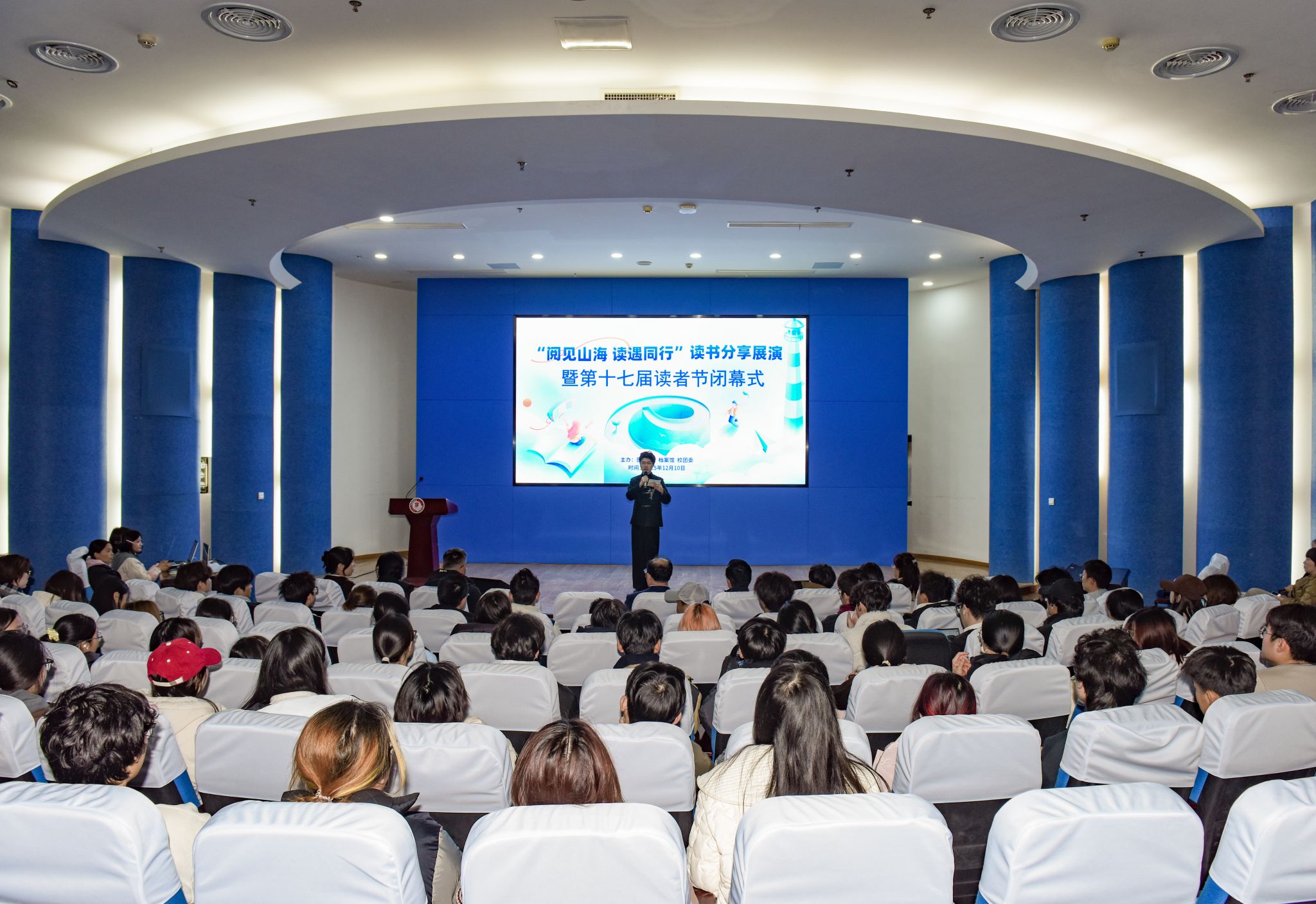 12月10日下午,南京工程学院“阅见山海 读遇同行”读书分享展演暨第十七届读者节闭幕式在图书馆学术报告厅举行。本次活动由图书馆、档案馆和校团委联合举办,党委常委、副校长赵文祥出席活动并致辞,主办单位负责人、校团委“青马工程”培训班学员、师生代表共200余人参加活动。