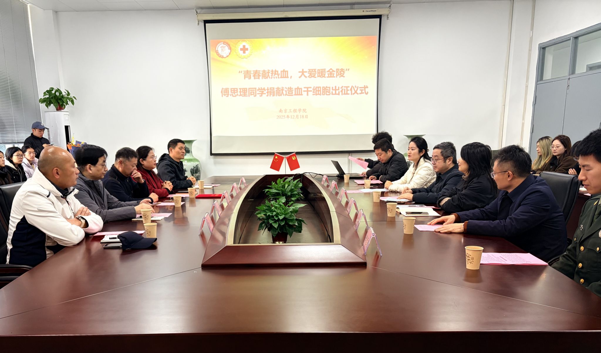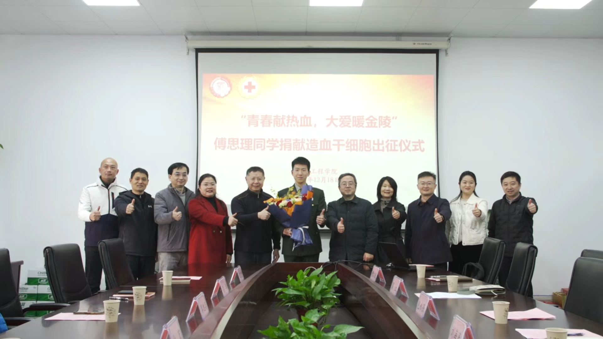 在得知傅思理同学即将进行造血干细胞采集的消息后,学校高度重视,于12月18日为其举行造血干细胞捐献出征仪式。副校长、校红十字会副会长包永强,南京市红十字会党组成员、副会长蔡旭兵,江宁区红十字会党组书记、常务副会长吕华等领导,校团委、校医院等相关职能部门负责人、学院党政负责人及师生代表共同见证这一爱心接力时刻。包永强指出,傅思理同学的善行是学校落实“立德树人”根本任务、深化校园精神文明建设的鲜活体现,传承了校园的向善精神。蔡旭兵对其无私奉献表示感谢,并呼吁更多青年加入捐献志愿者行列,传递生命希望。