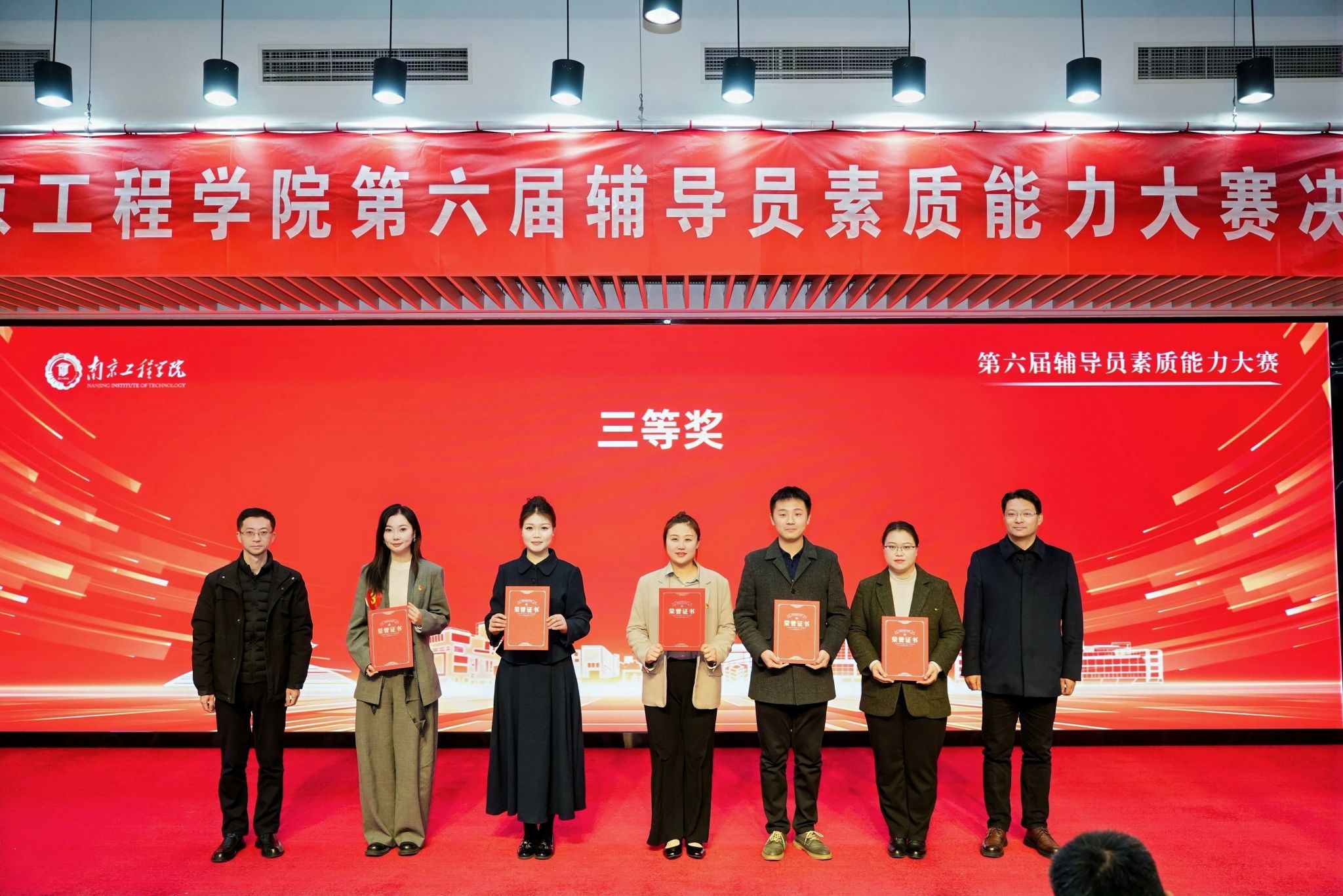经过现场比拼与综合评审,商学院文静、管理工程学院雷瑾瑄获一等奖;机械工程学院陈成、电力工程学院、沈国荣学院陈俊、计算机工程学院黄玮获二等奖;材料科学与工程学院王煜珑、能源与动力工程学院秦北辰、通信与人工智能学院、集成电路学院庾荷霄、艺术与设计学院成鲁盼、外国语学院陆健秋获三等奖。聂邦军对参赛选手的表现进行点评,与会领导为获奖选手颁发证书。